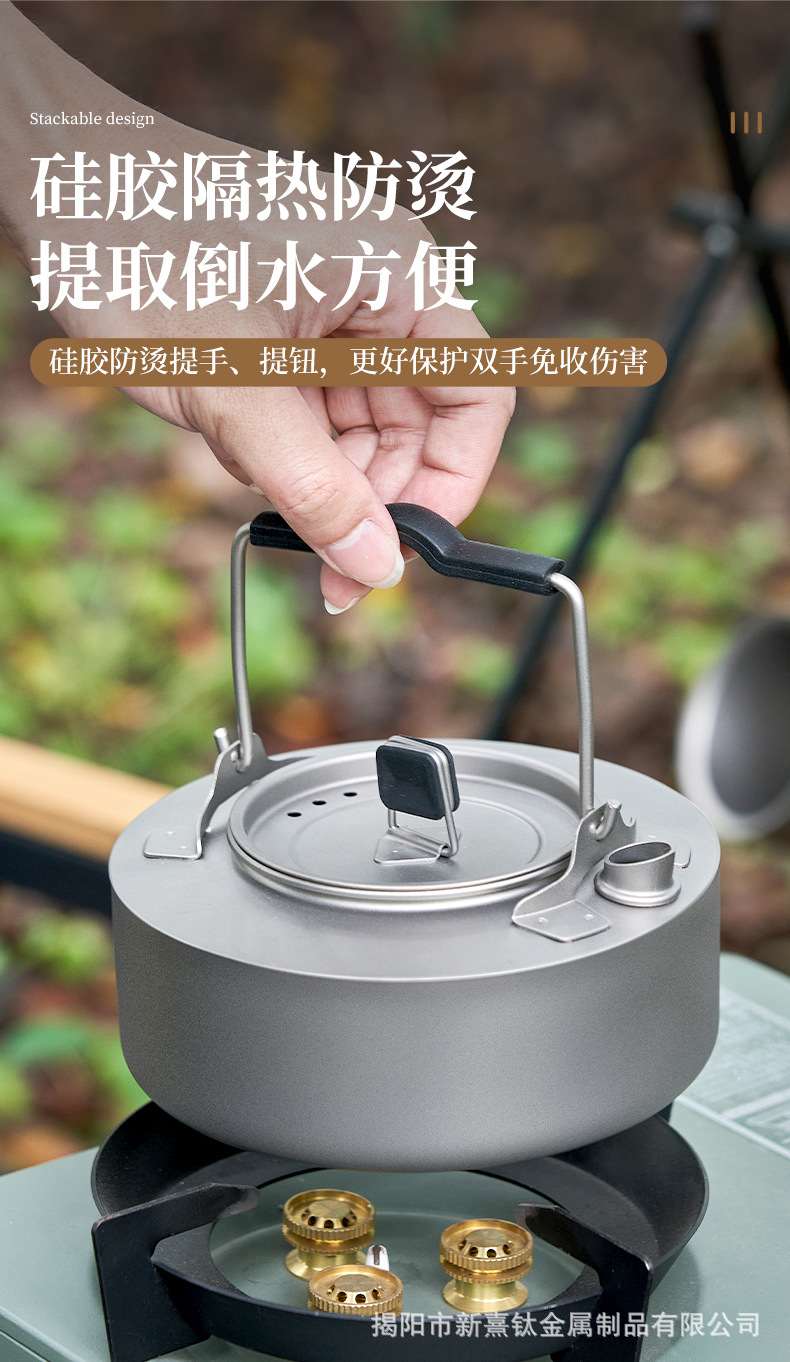 순수한 티타늄 주전자 야외 끓는 주전자 냄비 캠핑 장비 공급 필드 캠핑 식기 휴대용 세트 냄비 티타늄 냄비