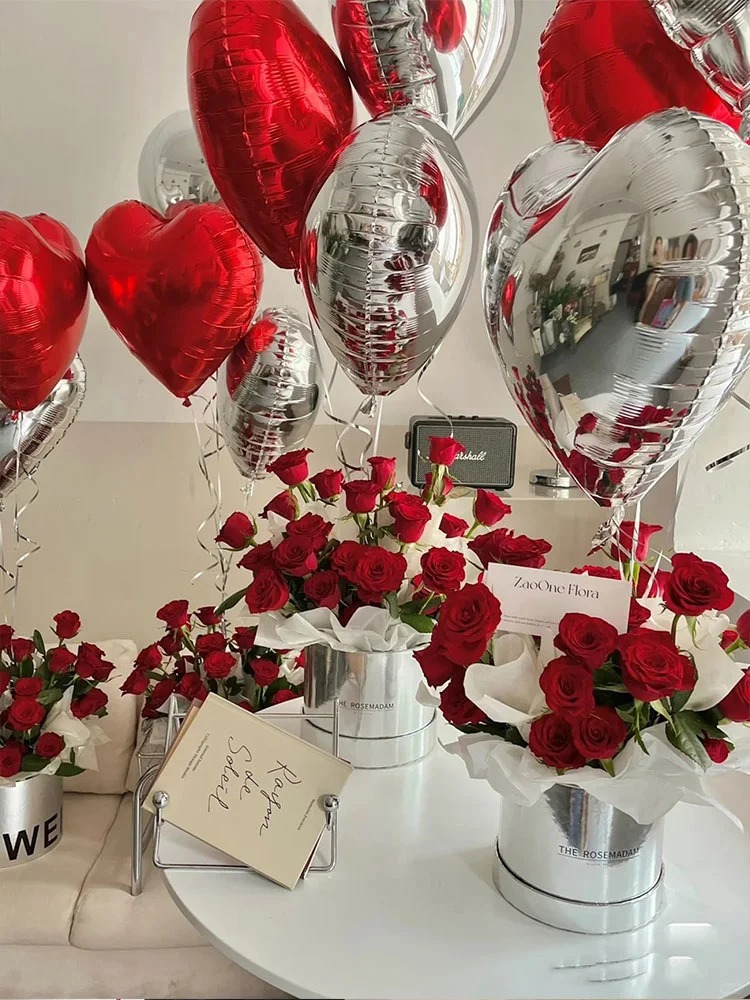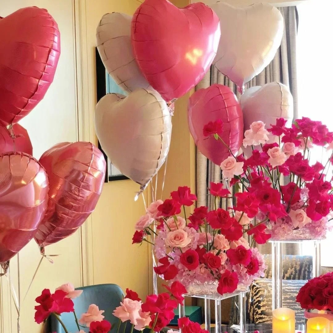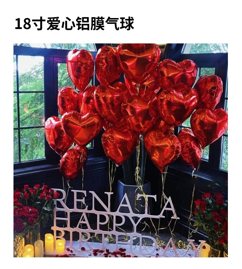 사랑의 마음 모양 알루미늄 필름 풍선 18inch 하트 모양 웨딩룸 장식 금색 은색 생일 파티 장식 도매