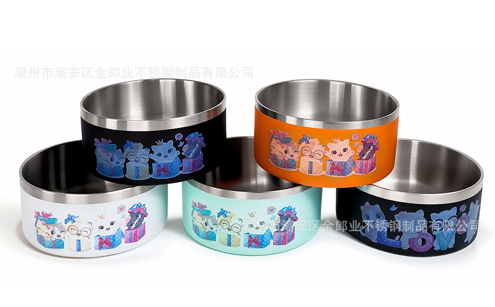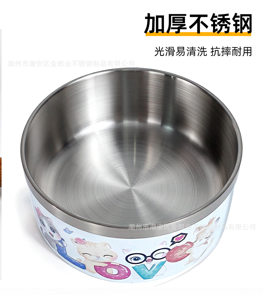 304 더블 레이어 두꺼운 개 그릇 만화 돼지 애완 동물 고양이 안티 흔들림 마시는 물 개 애완 동물 피더 도매