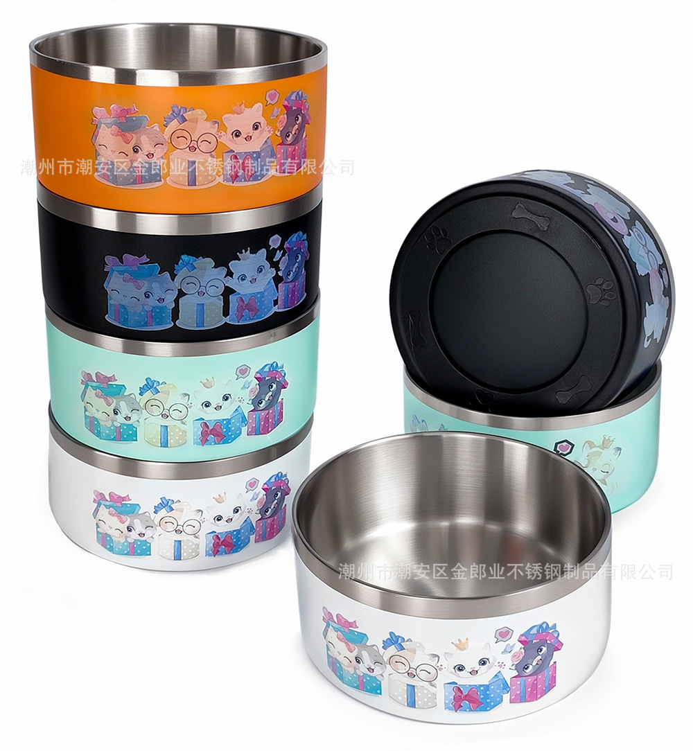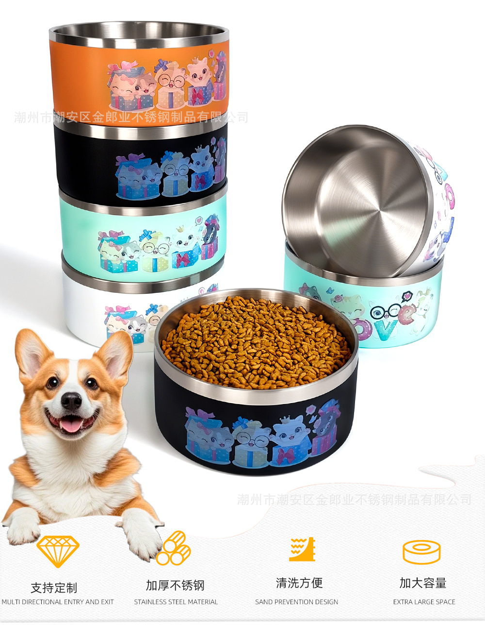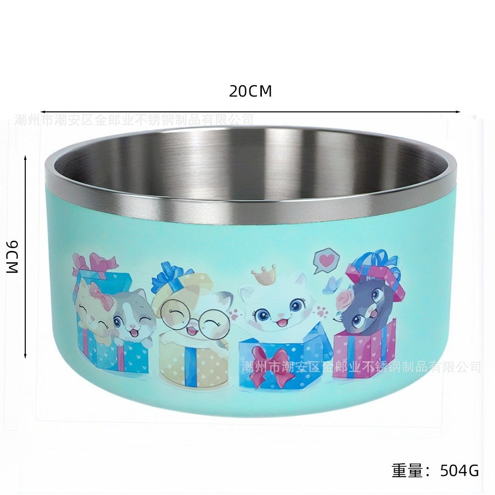 304 더블 레이어 두꺼운 개 그릇 만화 돼지 애완 동물 고양이 안티 흔들림 마시는 물 개 애완 동물 피더 도매스토어 가기
