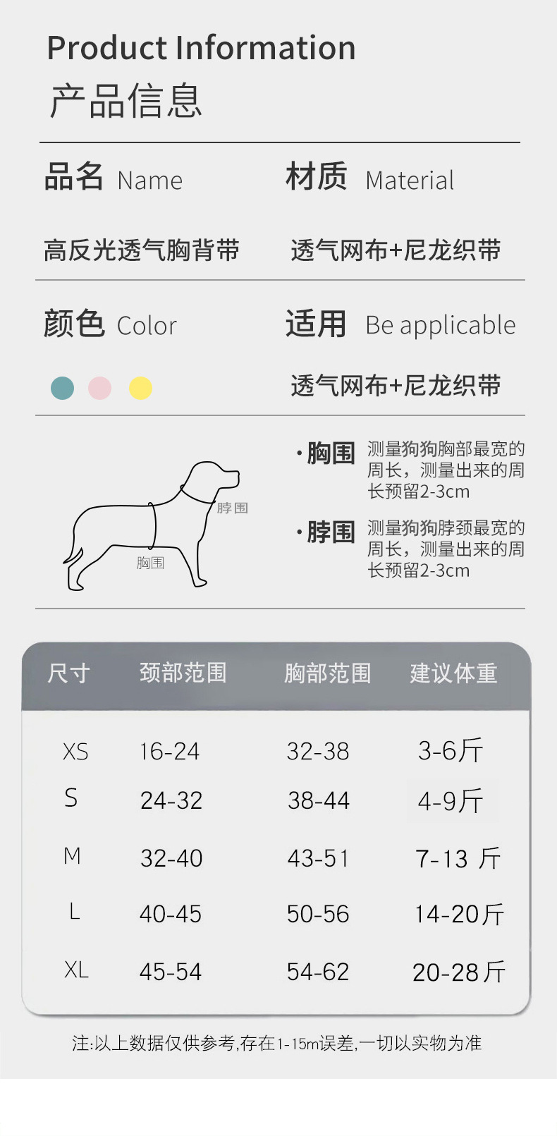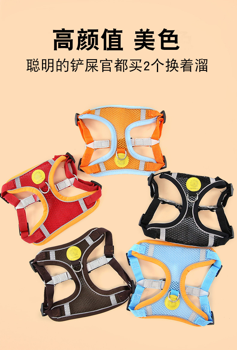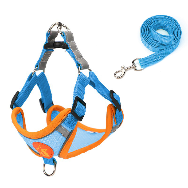 개 가죽끈 조끼 스타일 메쉬 하네스 칼라 중소형 개 산책용 가죽끈 개 체인 통기성 분실 방지스토어 가기