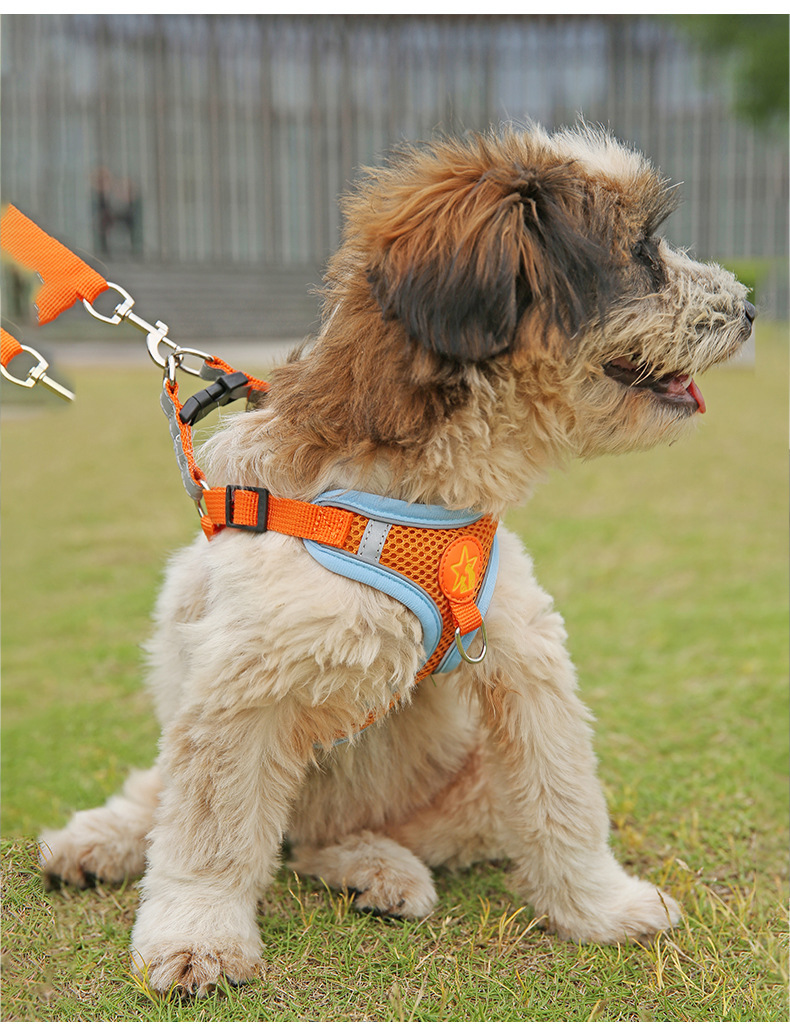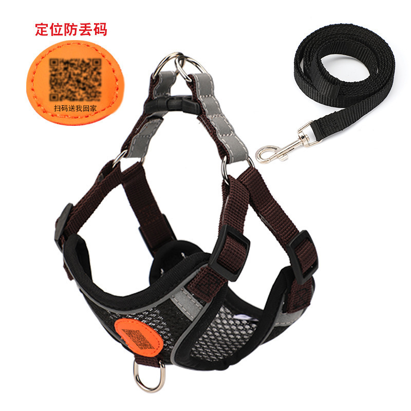 개 가죽끈 조끼 스타일 메쉬 하네스 칼라 중소형 개 산책용 가죽끈 개 체인 통기성 분실 방지