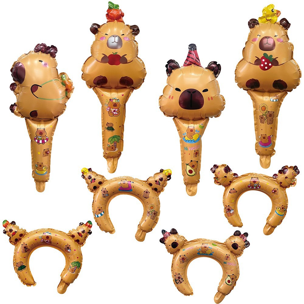 새로운 Capibala Capybara 만화 모양의 알루미늄 필름 풍선 머리띠 머리 장식 핸드 스틱 중간 스틱을 사용자 정의할 수 있습니다