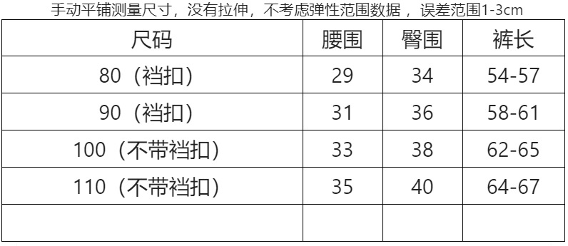 手动平铺测量尺寸,没有拉伸,不考虑弹性范围数据 ,误差范围1-3cm