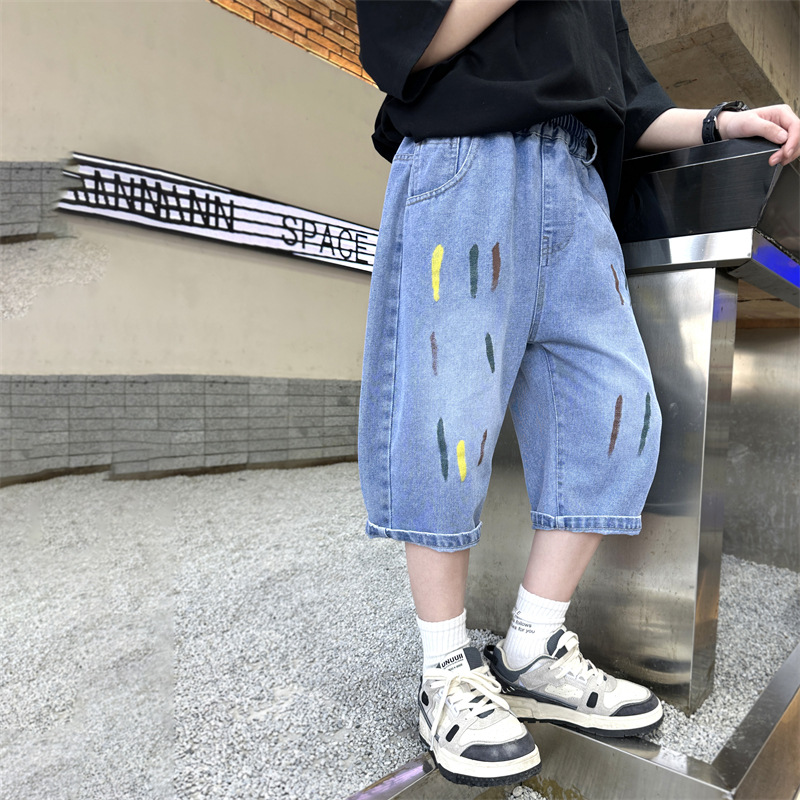 남아 여름 바지 반바지 2025 새로운 스타일 중대형 아동 여름 청바지 아동 여름 5부 바지 얇은 중간 바지