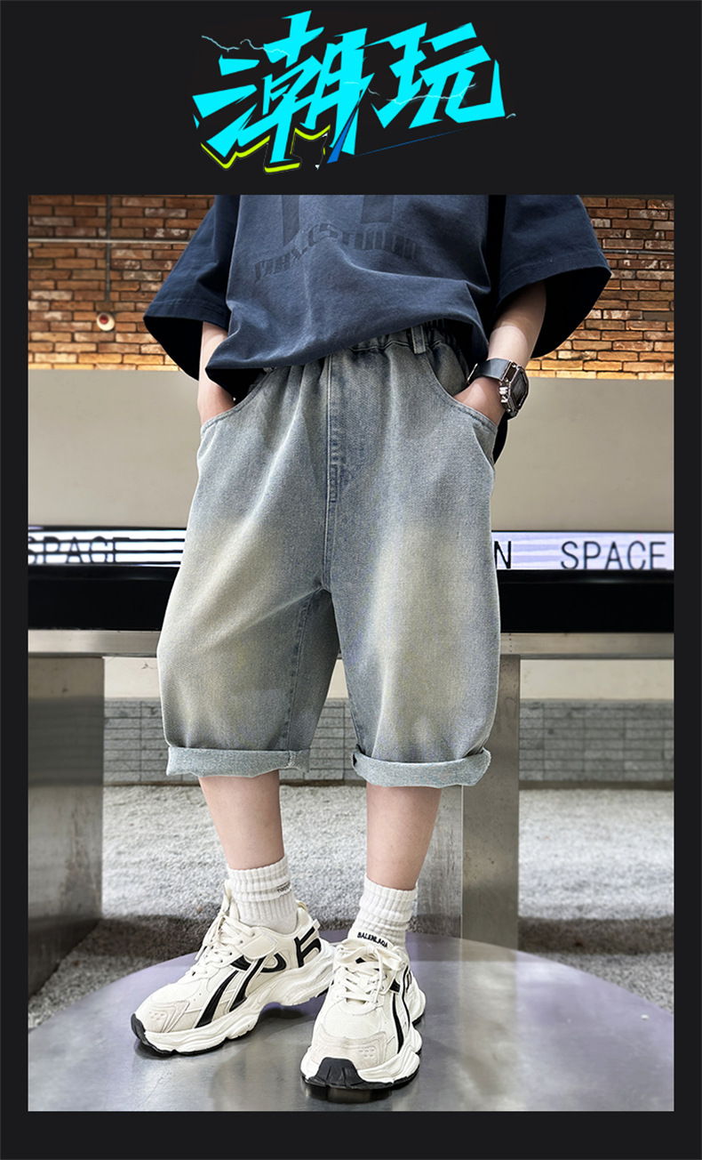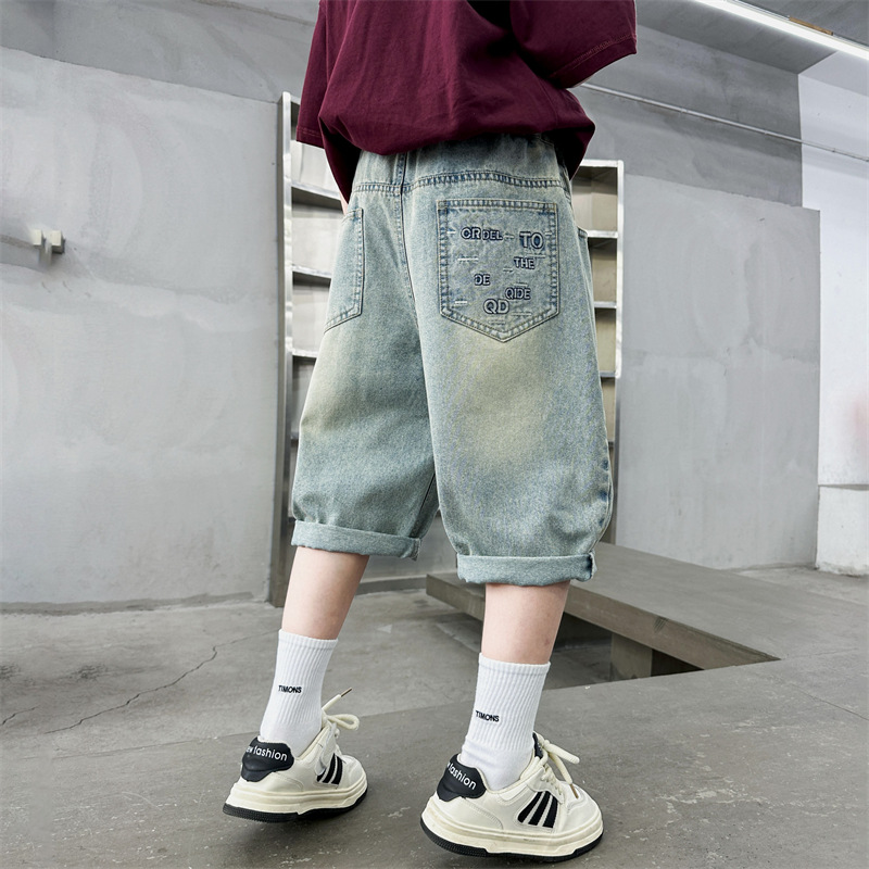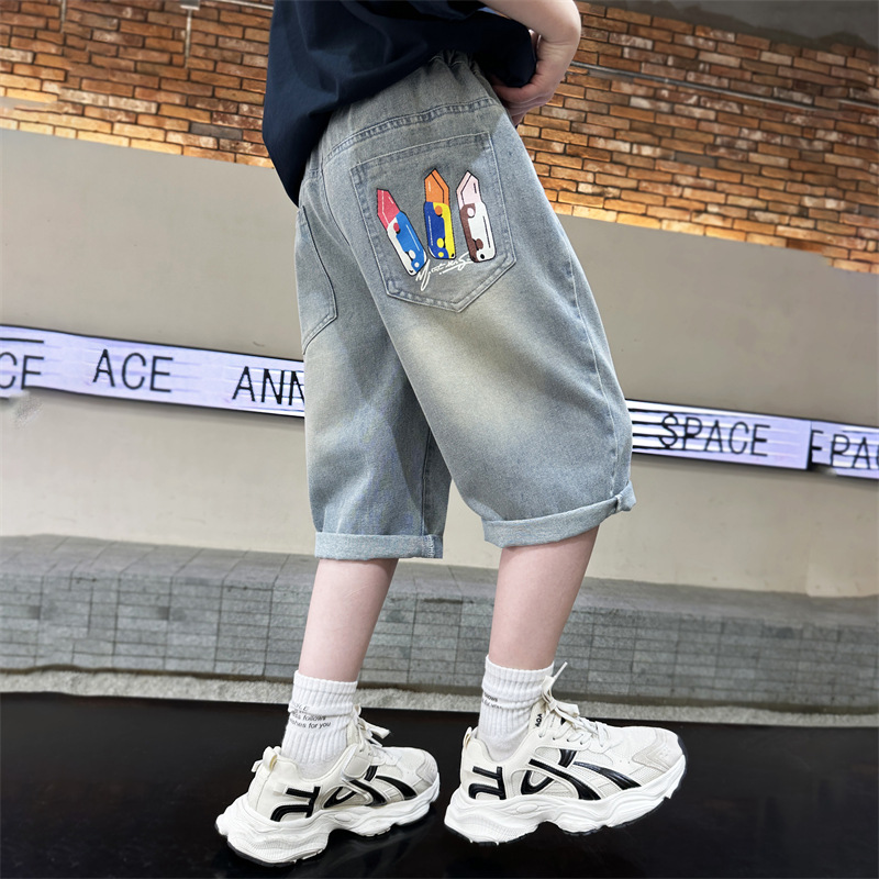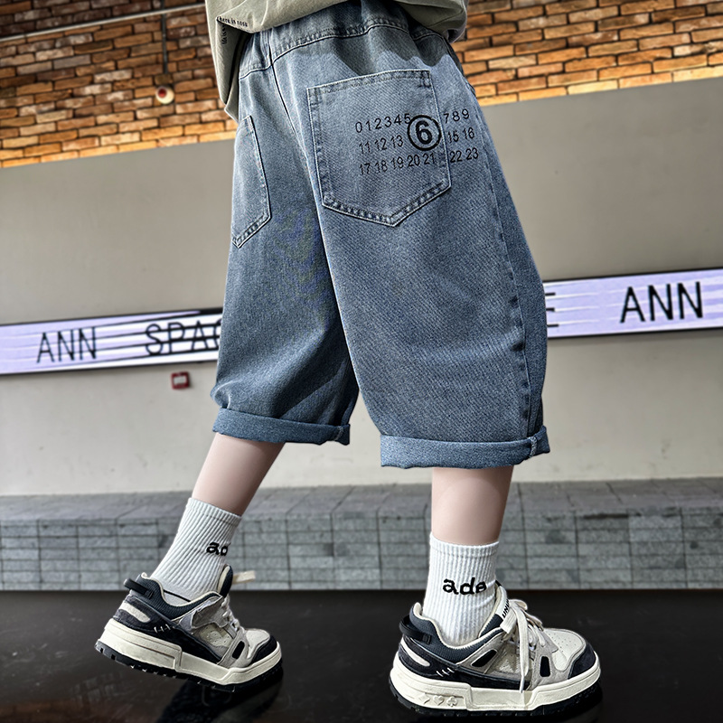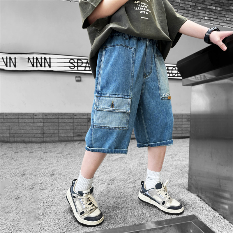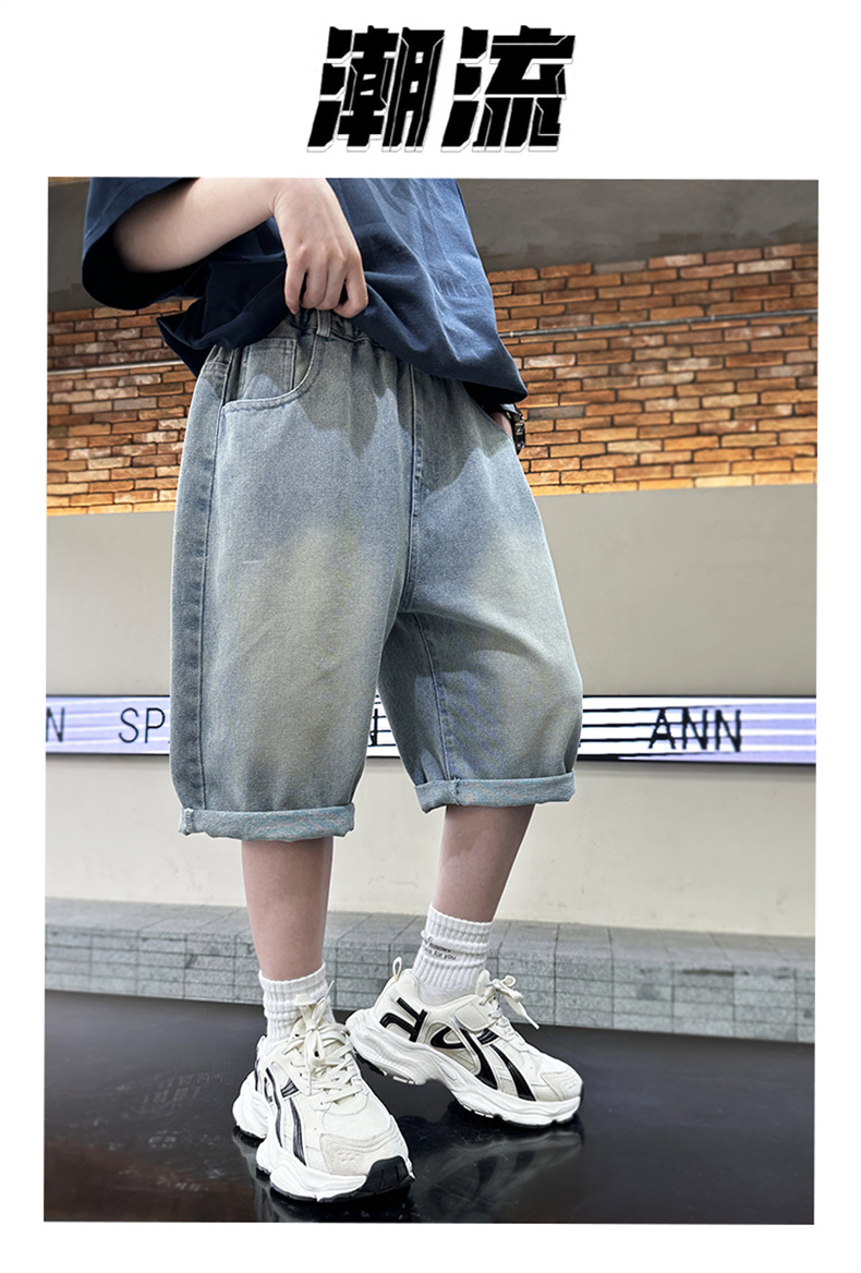 남아 여름 바지 반바지 2025 새로운 스타일 중대형 아동 여름 청바지 아동 여름 5부 바지 얇은 중간 바지스토어 가기