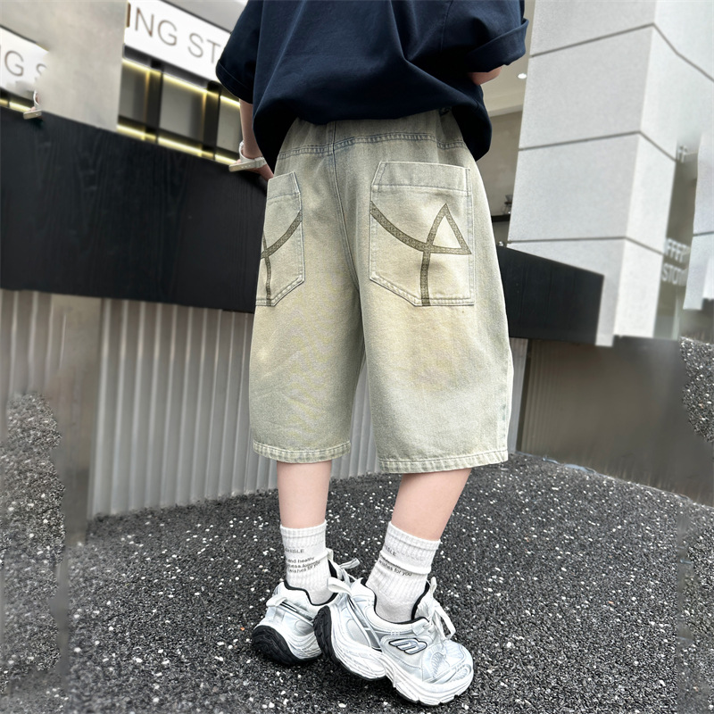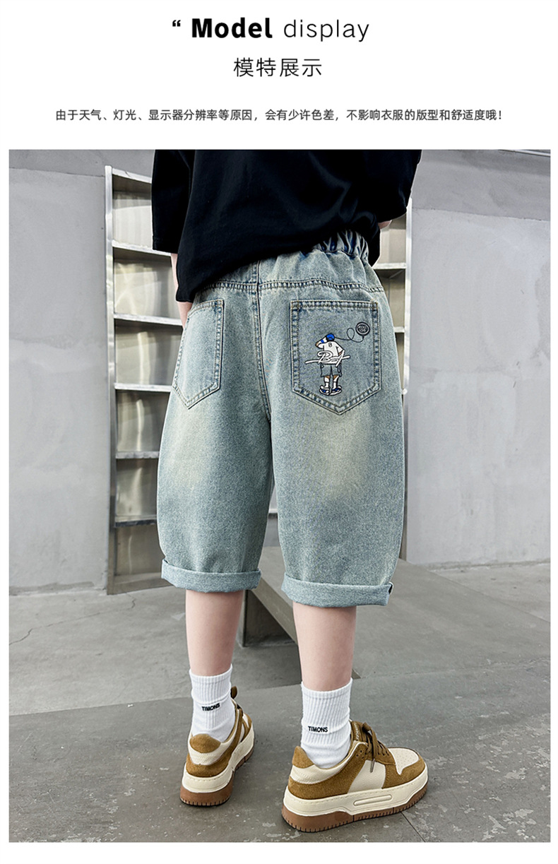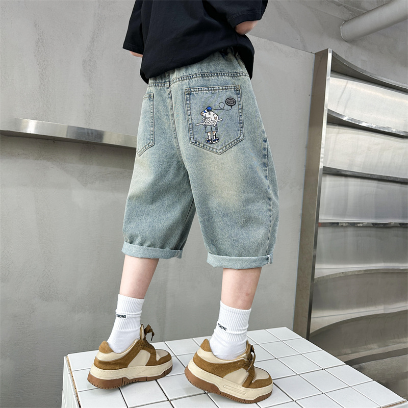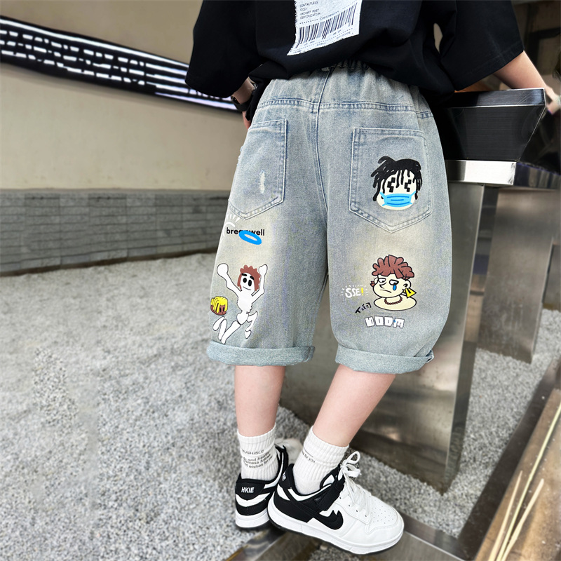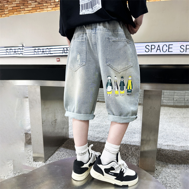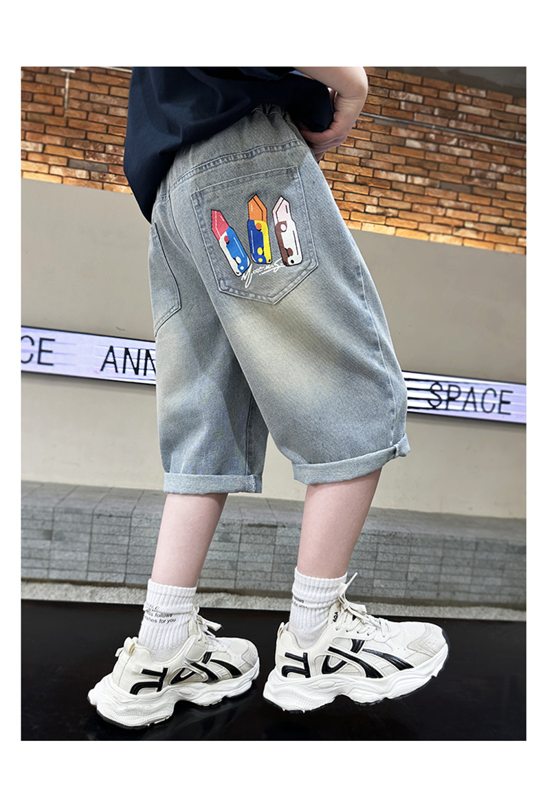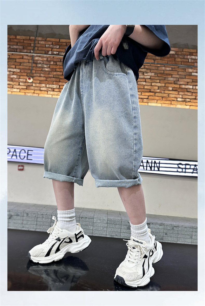 남아 여름 바지 반바지 2025 새로운 스타일 중대형 아동 여름 청바지 아동 여름 5부 바지 얇은 중간 바지스토어 가기