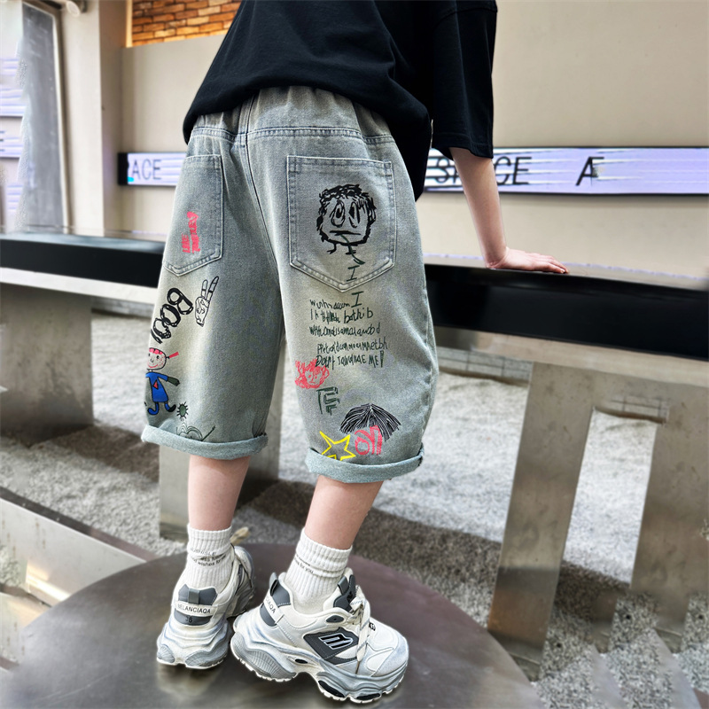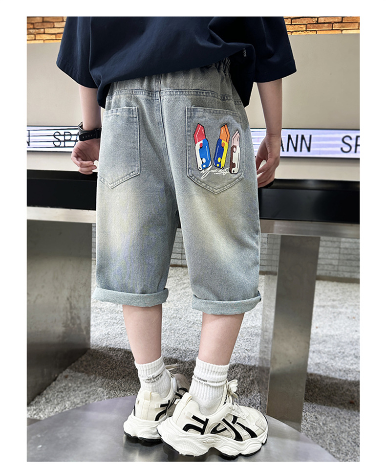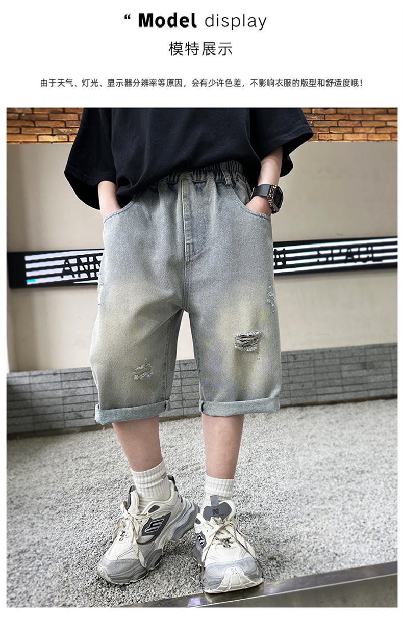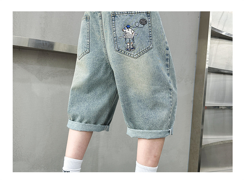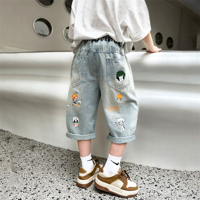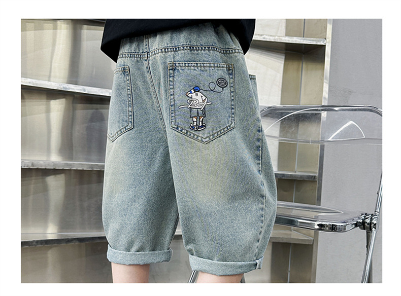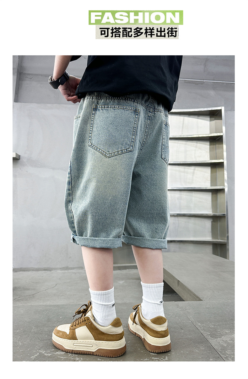 남아 여름 바지 반바지 2025 새로운 스타일 중대형 아동 여름 청바지 아동 여름 5부 바지 얇은 중간 바지스토어 가기