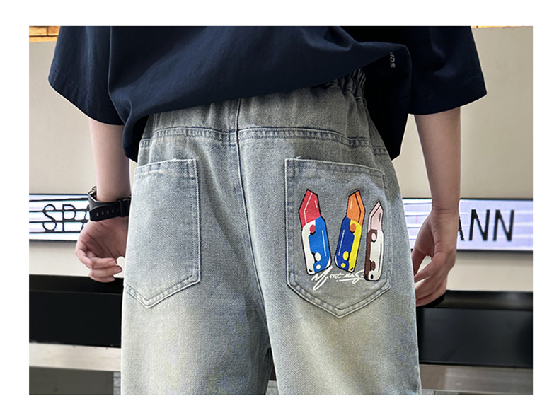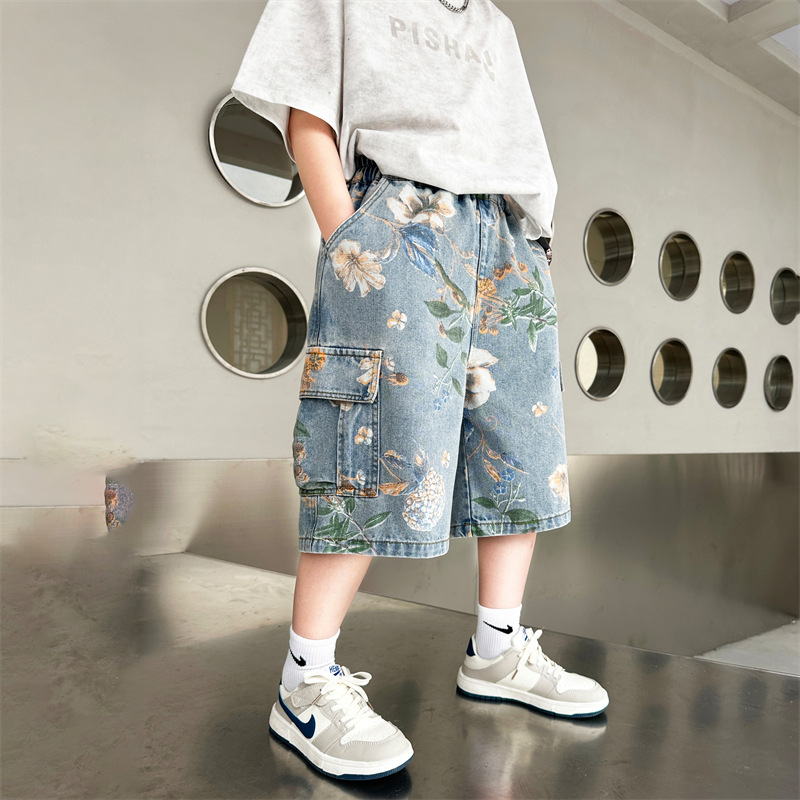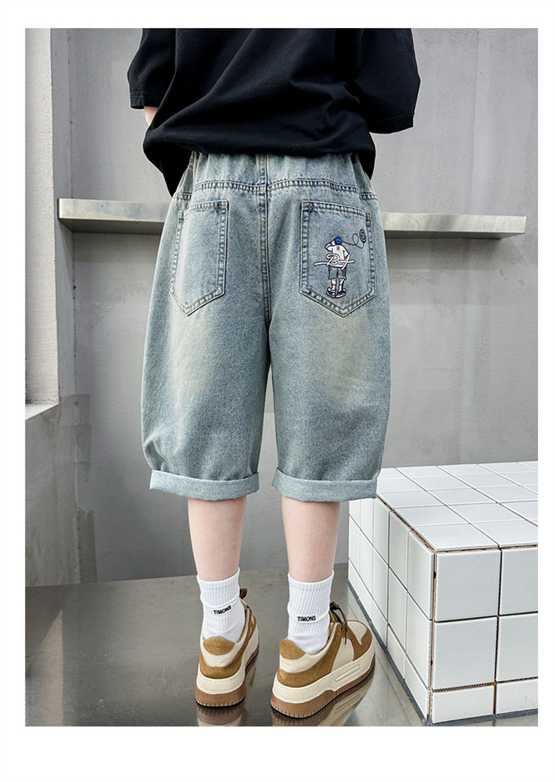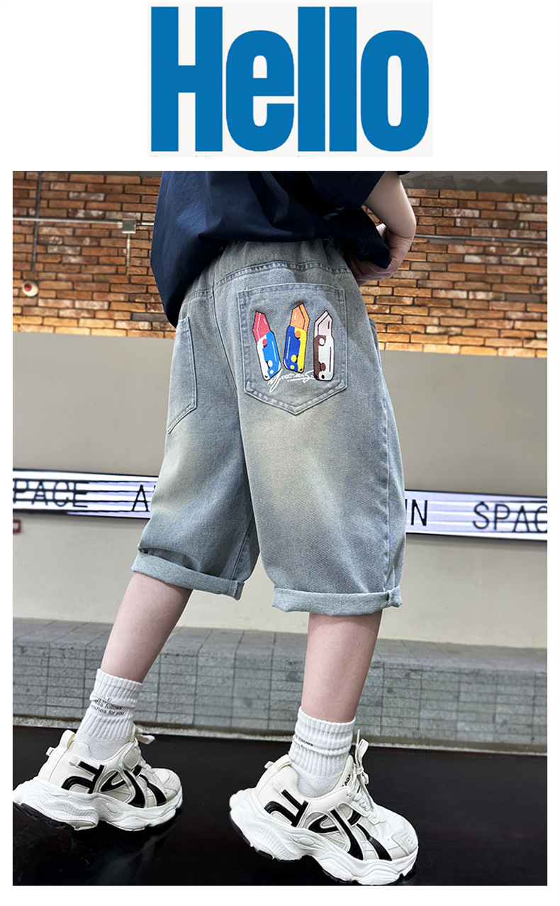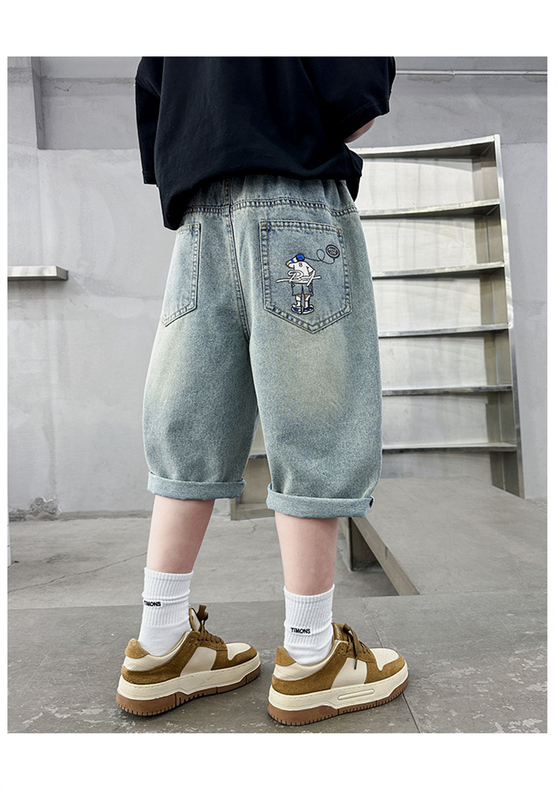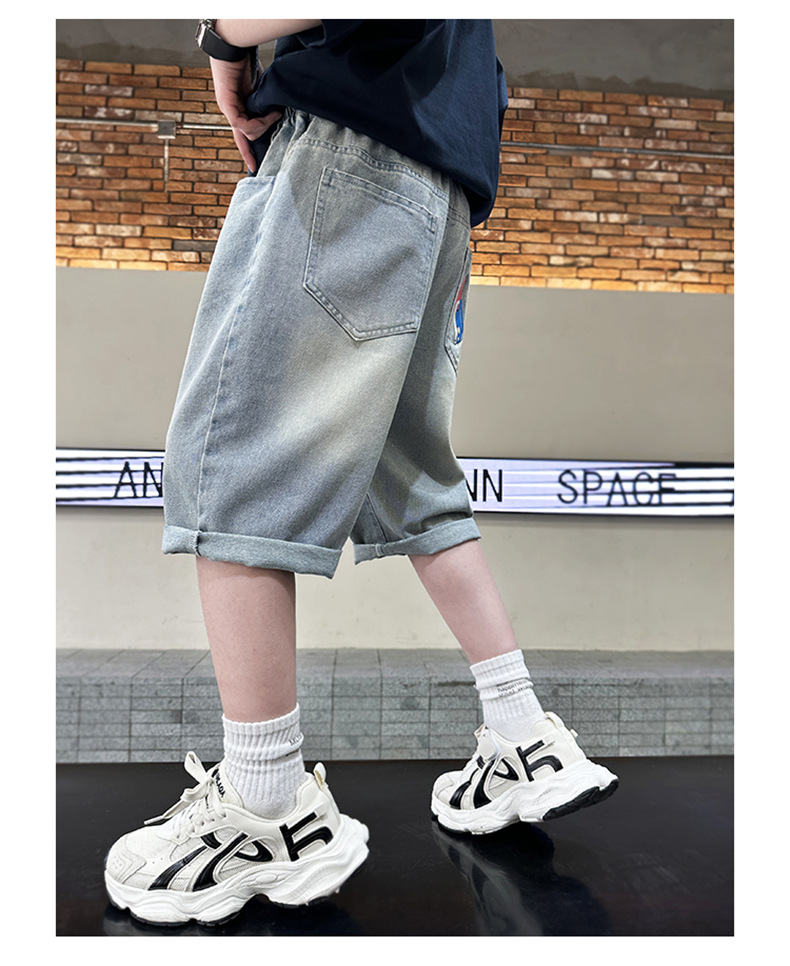 남아 여름 바지 반바지 2025 새로운 스타일 중대형 아동 여름 청바지 아동 여름 5부 바지 얇은 중간 바지스토어 가기