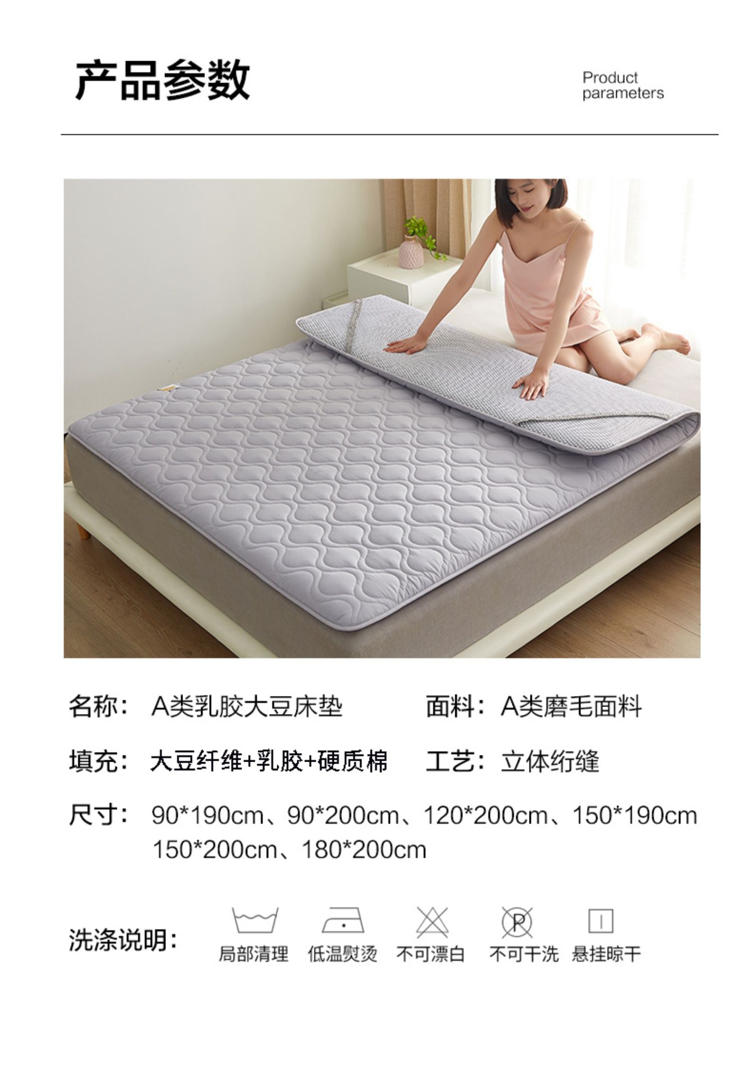 • 180x200cm [A급 규격, 진드기 방지, 라텍스 충전재]