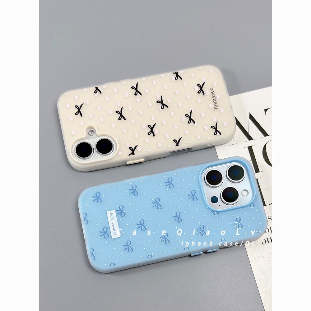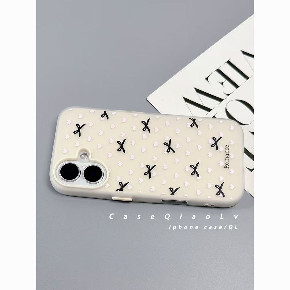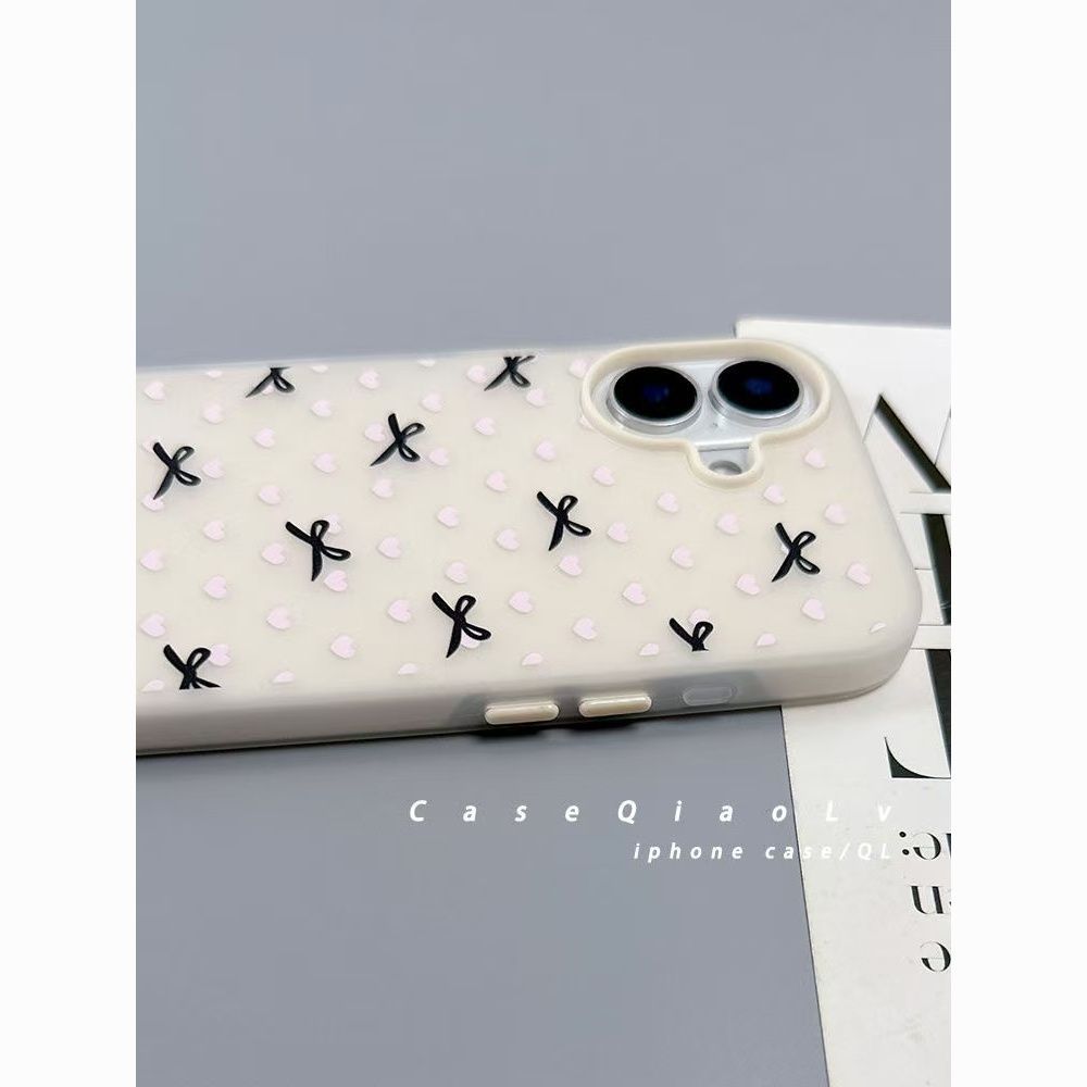 Apple 16/15 휴대폰 케이스 iPhone14 피부 느낌 매트 13/12 투인원에 적합한 사랑 폴카 도트 리본