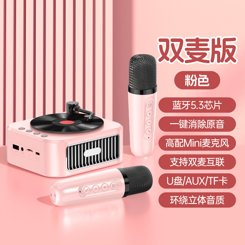 • 레코드 플레이어 노래방 스피커 [더블 위트] 선셋 핑크