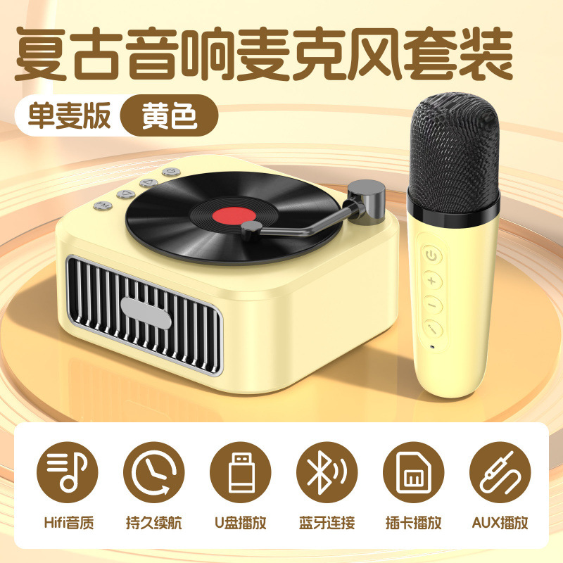 • 레코드 플레이어 노래방 스피커 [싱글 위트] 크림 옐로우