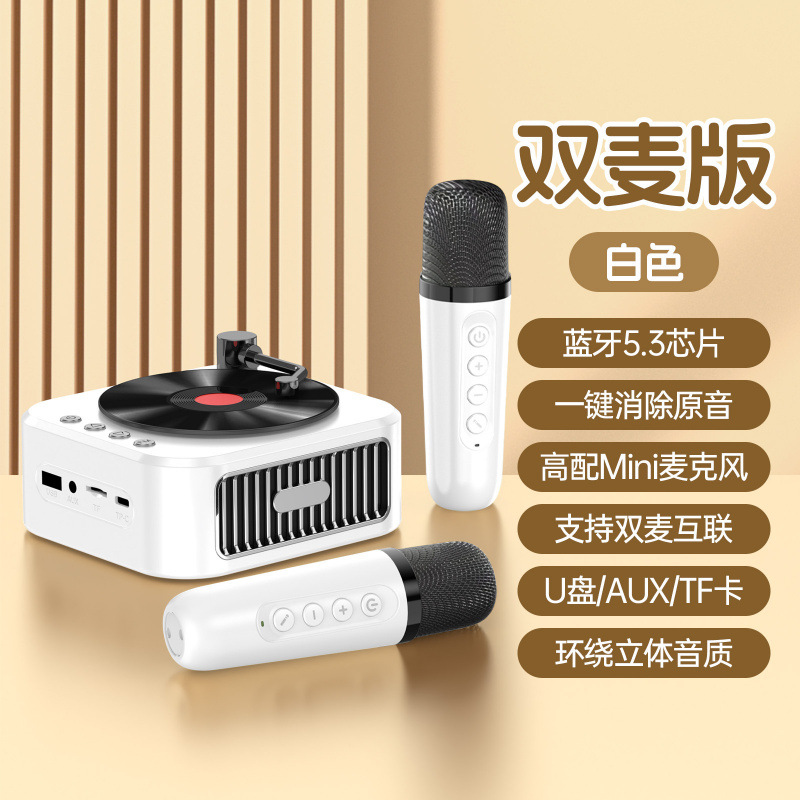 • 레코드 플레이어 노래방 스피커 [더블 위트] 글레이셔 화이트