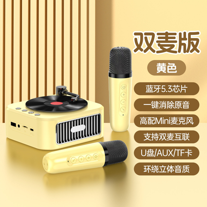 • 레코드 플레이어 노래방 스피커 [더블 위트] 크림 옐로우