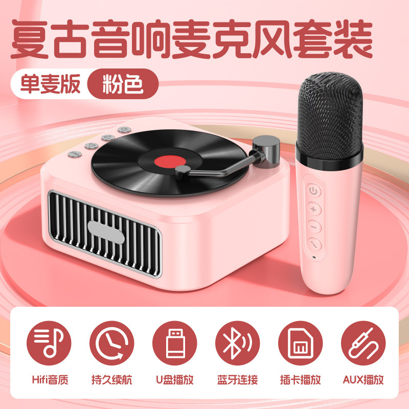 • 레코드 플레이어 노래방 스피커 [싱글 위트] 선셋 핑크