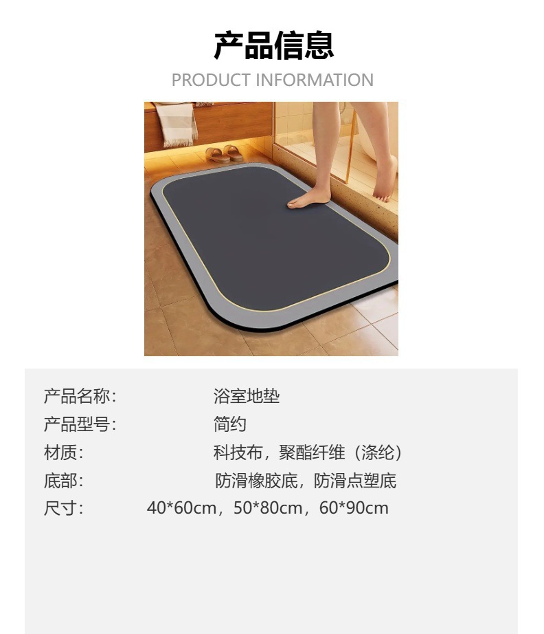 욕실 문을 위한 간단한 단색 욕실 바닥 매트 부드러운 규조토 진흙 흡수 매트 미끄럼 방지 발 매트는 얼룩 방지 및 관리가 용이합니다.스토어 가기