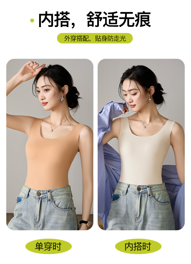 아이스 실크 Traceless Camisole 여성용 가슴 패드 2025 새로운 스타일 베이스 내부 웨이브 화이트 가슴 패드 여름 얇은 스타일스토어 가기