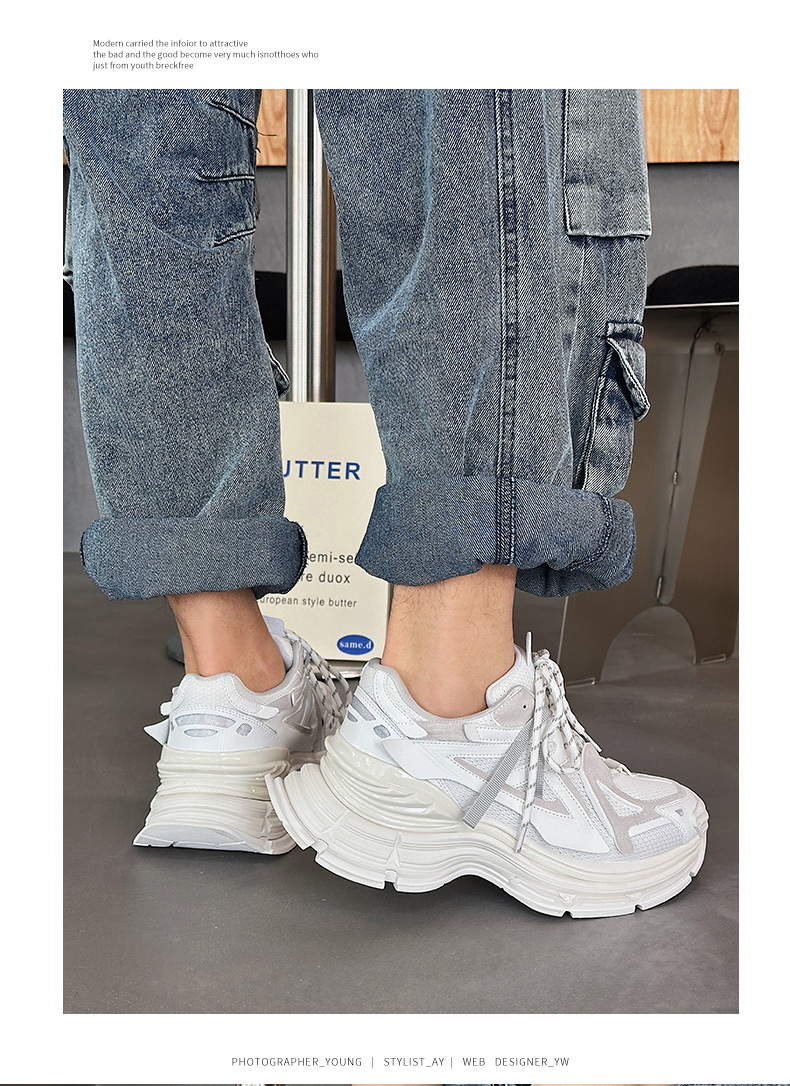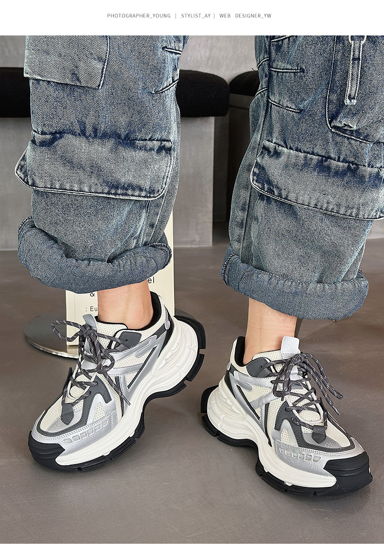유럽산 토레 신발 높이 증가 신발 여성 신발 올매치 2025 봄 새로운 트렌디 쿨 컬러 매칭 두꺼운 밑창 스포츠 캐주얼 신발 남성용
