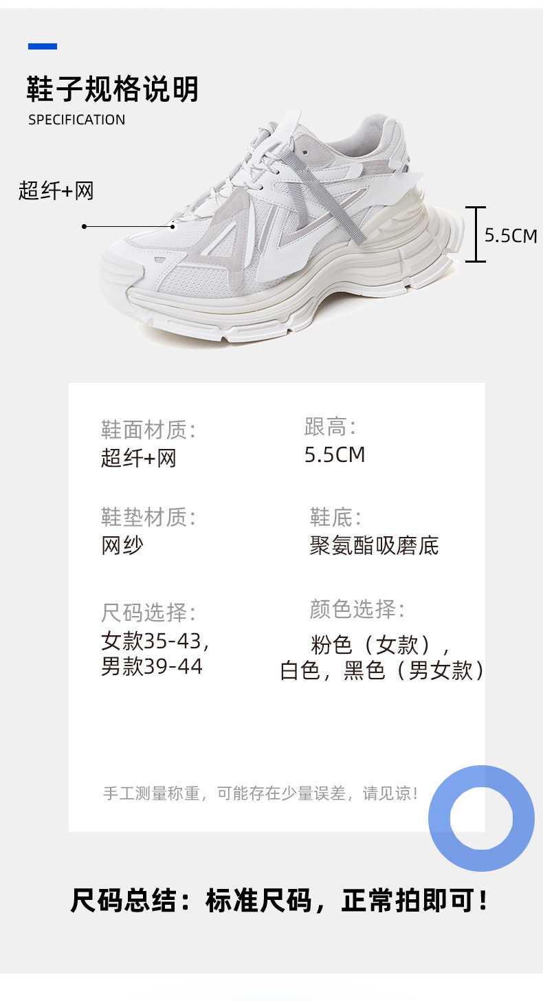 유럽산 토레 신발 높이 증가 신발 여성 신발 올매치 2025 봄 새로운 트렌디 쿨 컬러 매칭 두꺼운 밑창 스포츠 캐주얼 신발 남성용스토어 가기
