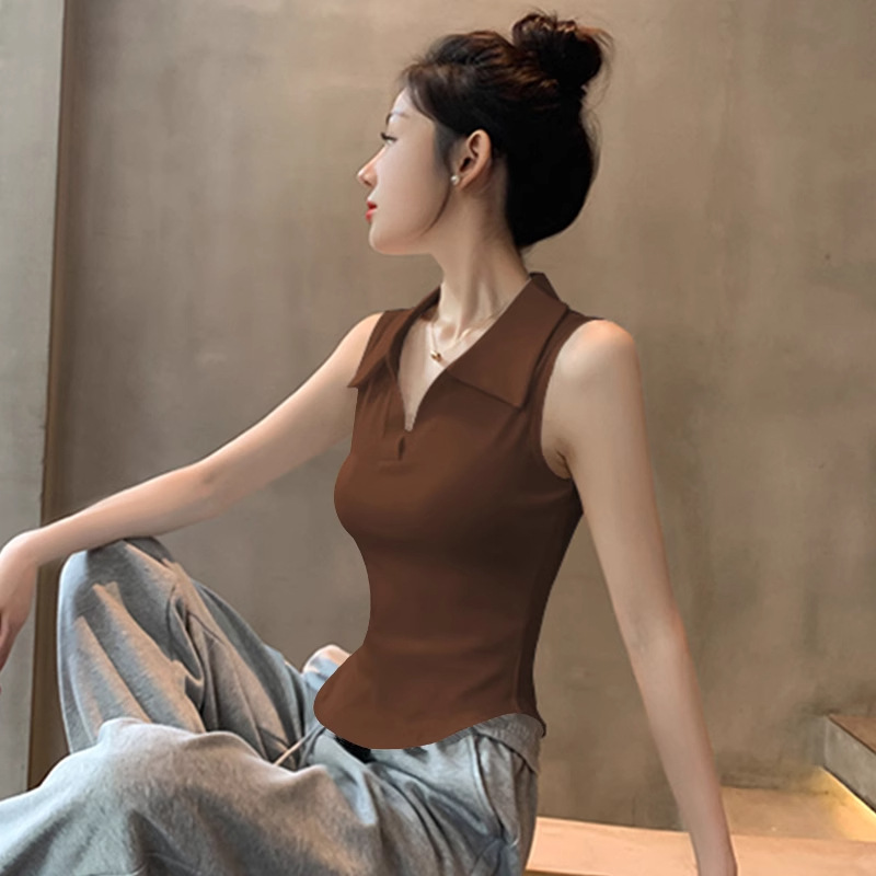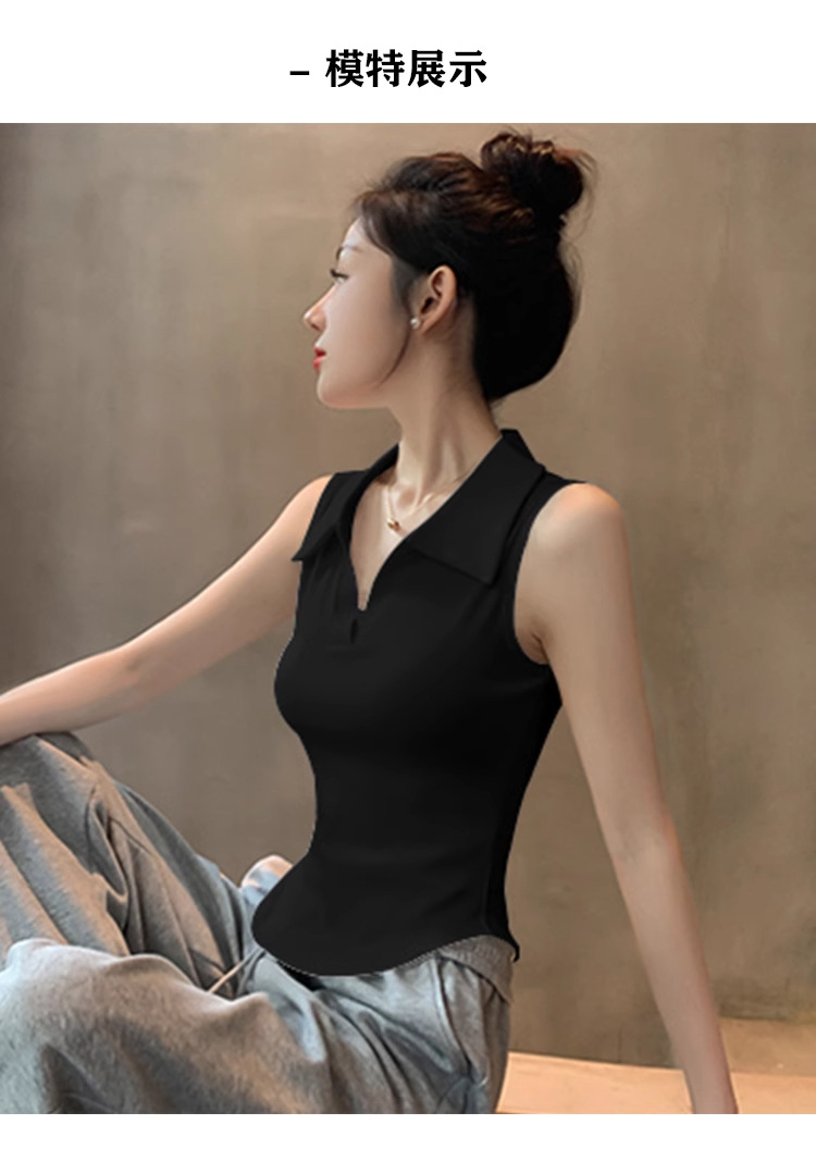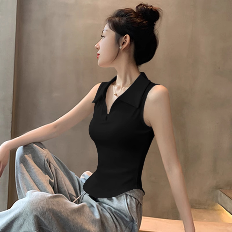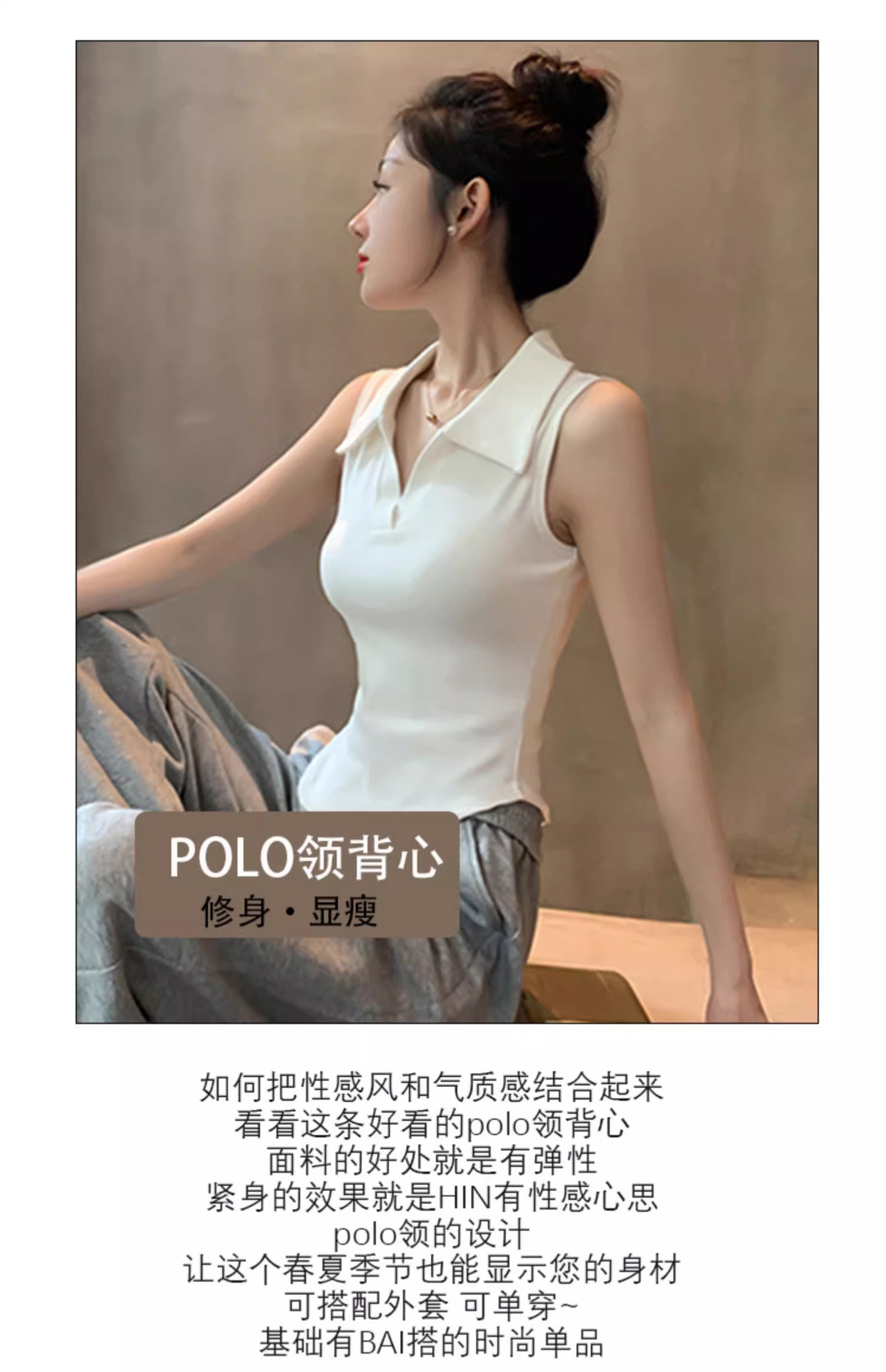 블랙 POLO 칼라 카미 솔 여성 2025 년 여름 새로운 민소매 디자인 센스 틈새 내복 옷스토어 가기