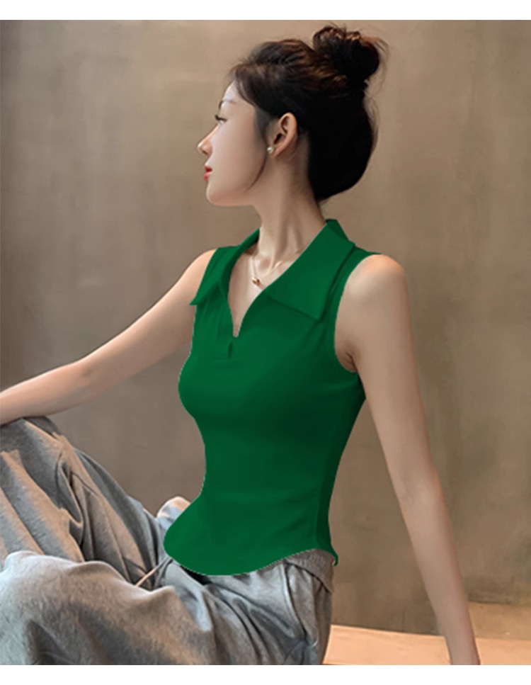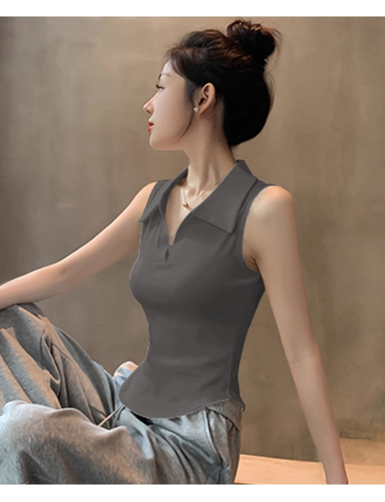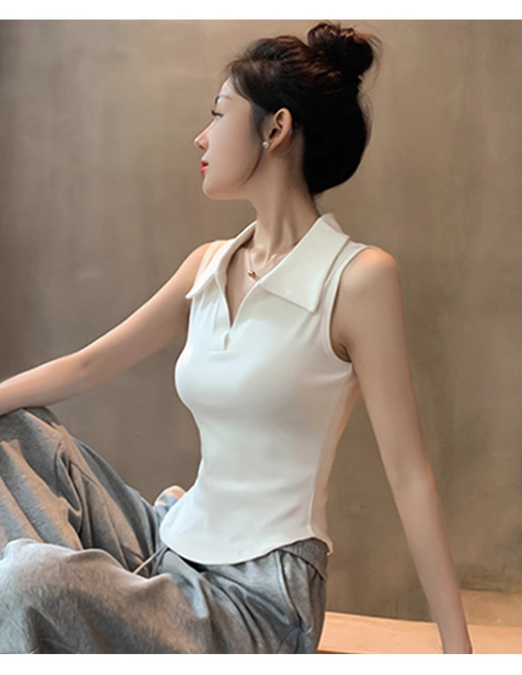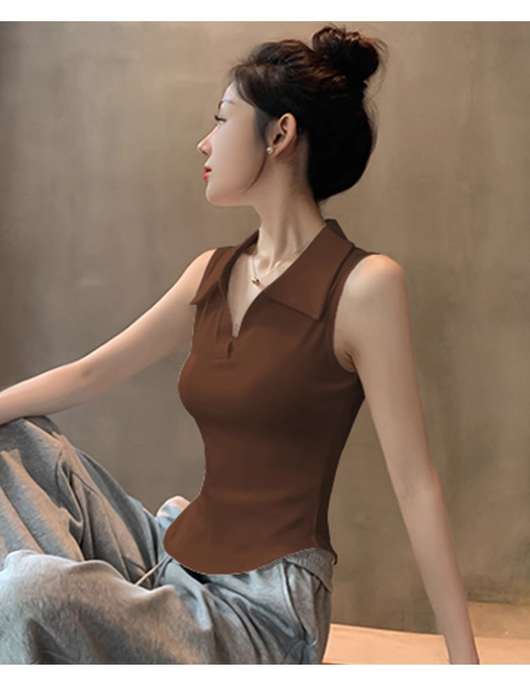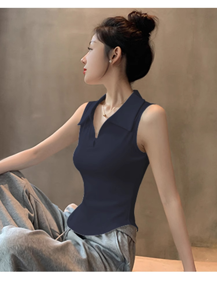 블랙 POLO 칼라 카미 솔 여성 2025 년 여름 새로운 민소매 디자인 센스 틈새 내복 옷스토어 가기