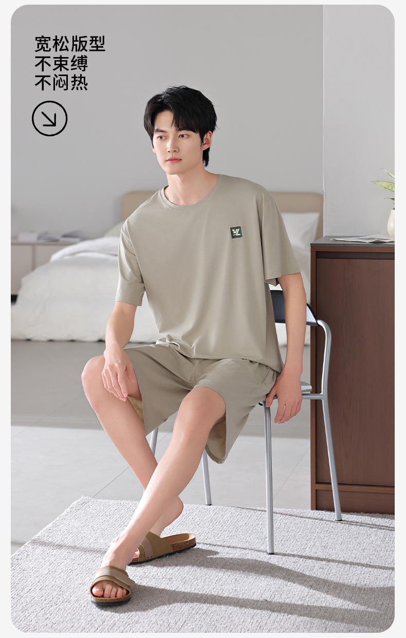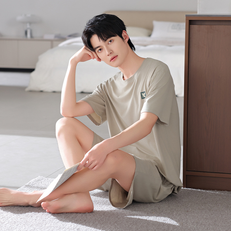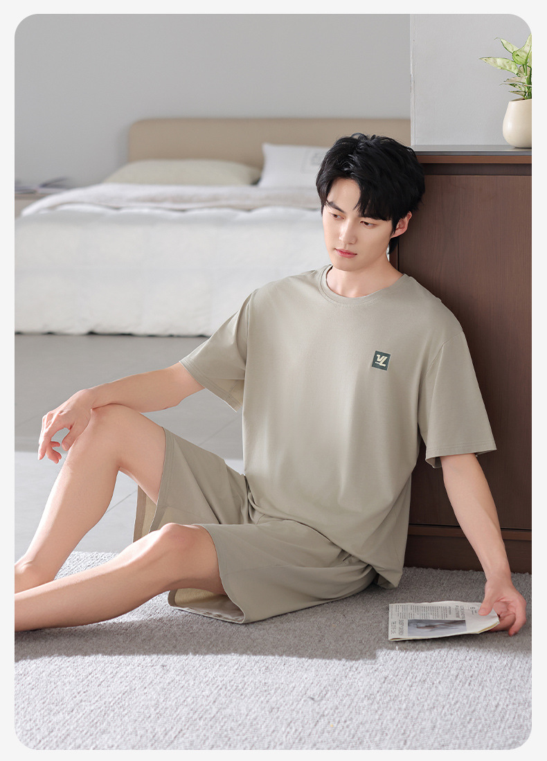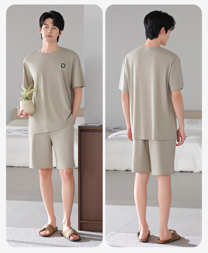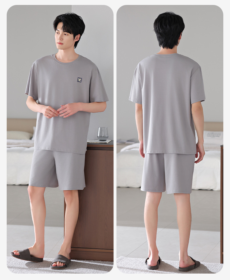 모달 파자마 남자 반팔 반바지 시원한 세트 여름 얇은 스포츠 레저 스타일 청소년 홈 옷스토어 가기