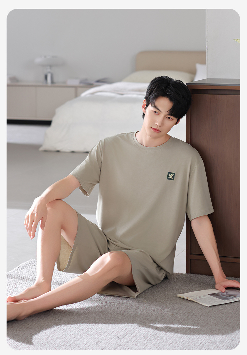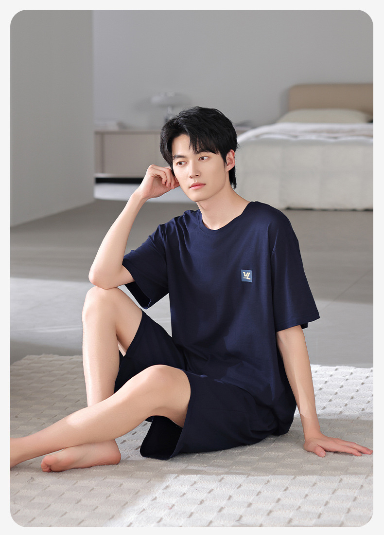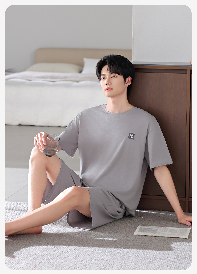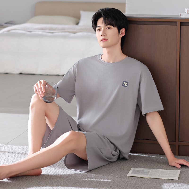 모달 파자마 남자 반팔 반바지 시원한 세트 여름 얇은 스포츠 레저 스타일 청소년 홈 옷스토어 가기