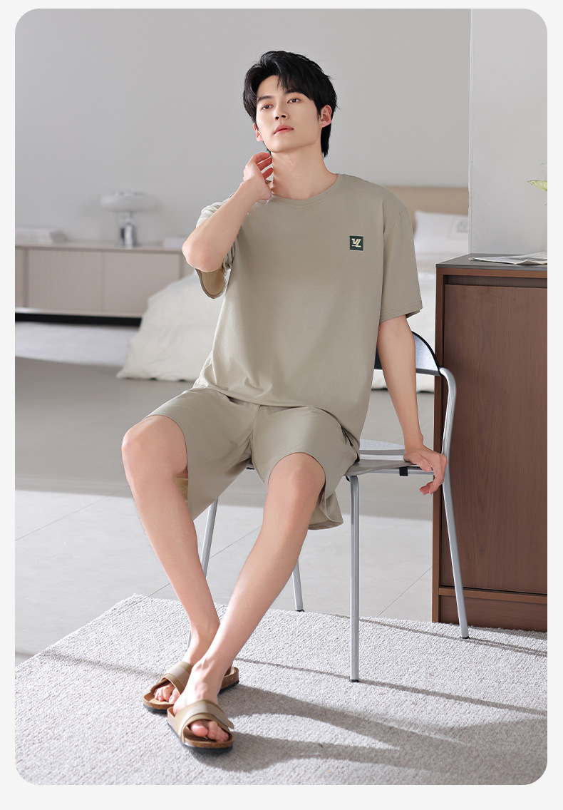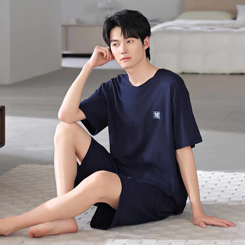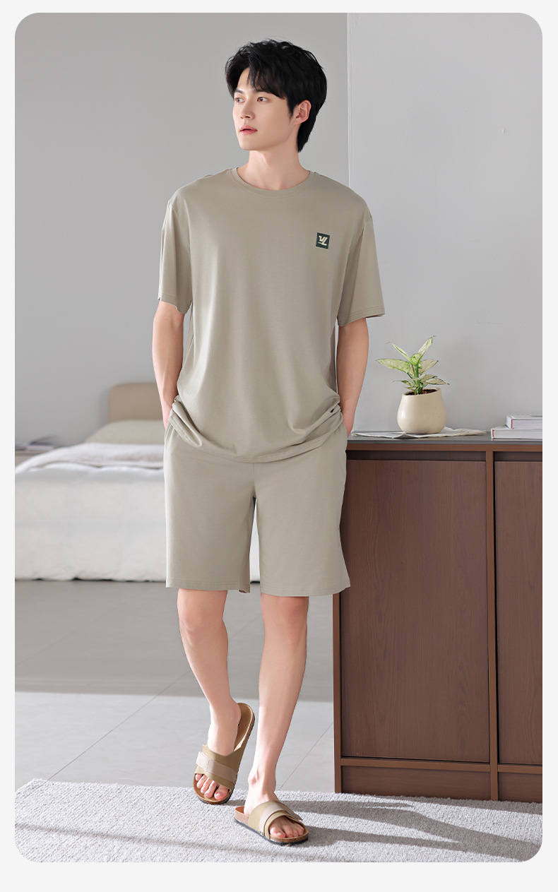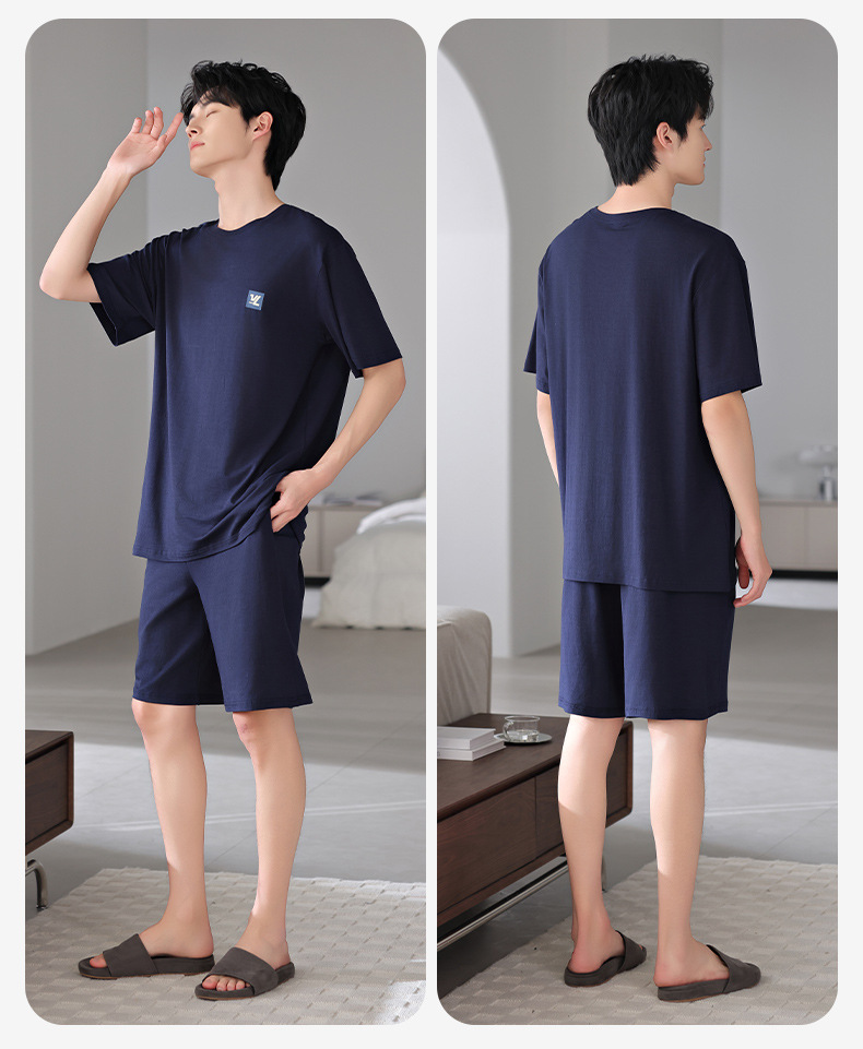 모달 파자마 남자 반팔 반바지 시원한 세트 여름 얇은 스포츠 레저 스타일 청소년 홈 옷