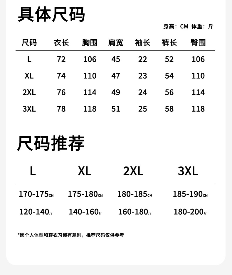 • 3XL (권장 키 185-190, 몸무게 180-200)
