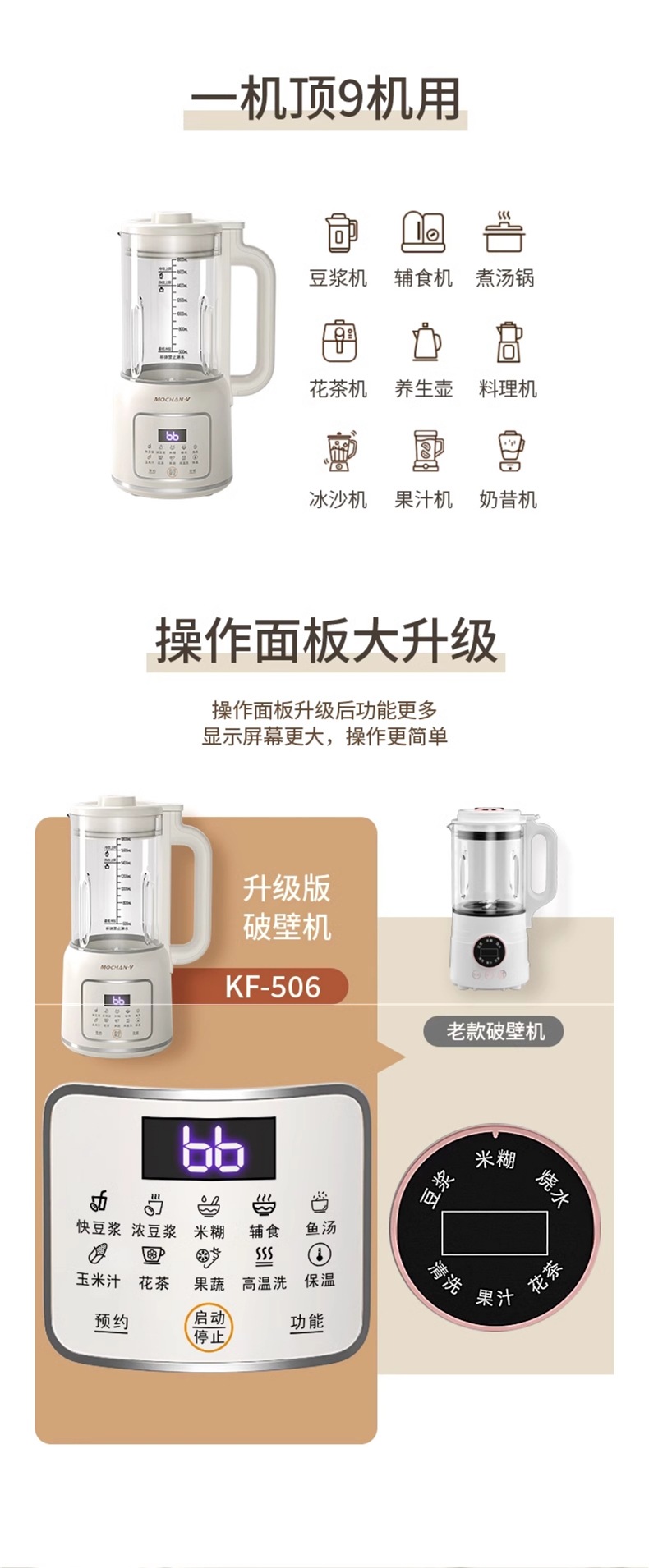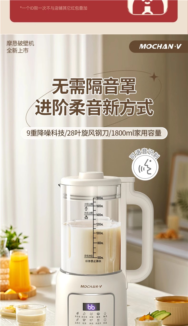 영국 Mochan-v 벽 파괴 기계 가정용 완전 자동 라이트 사운드 새로운 소형 두유 기계 슬래그없는 요리 기계스토어 가기