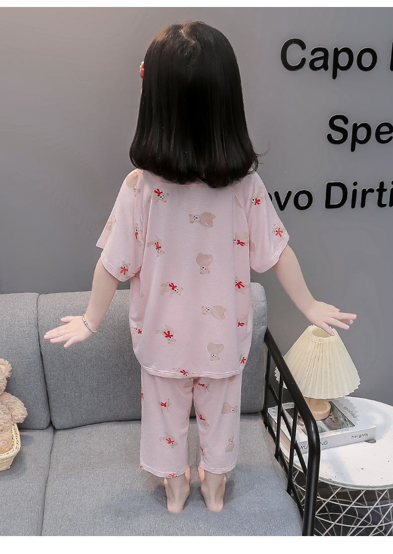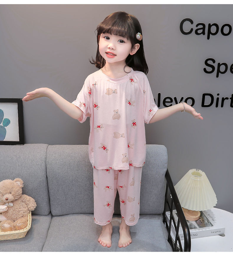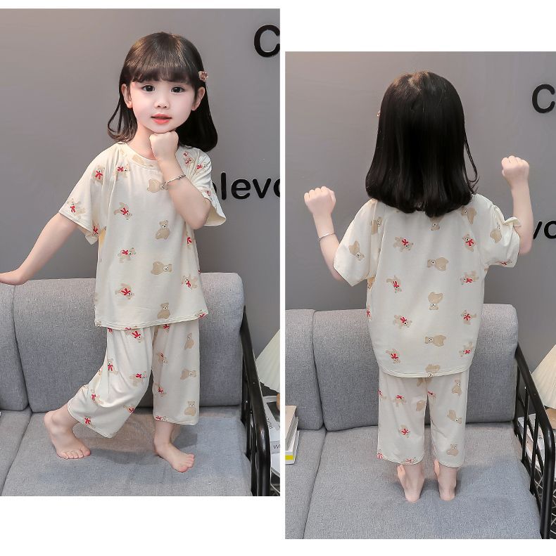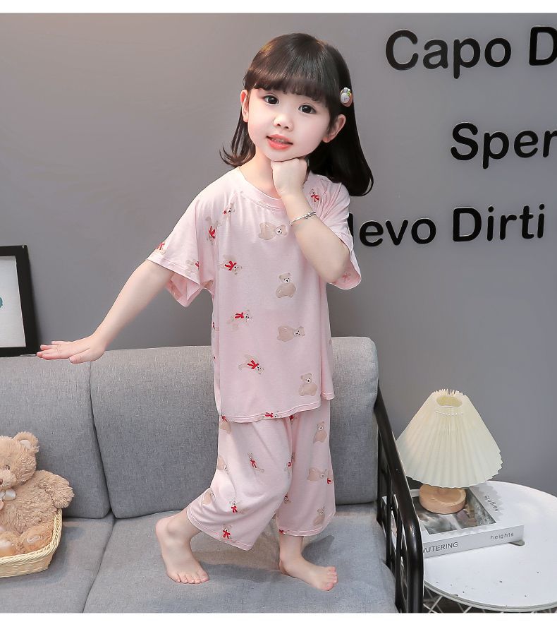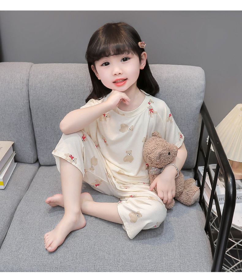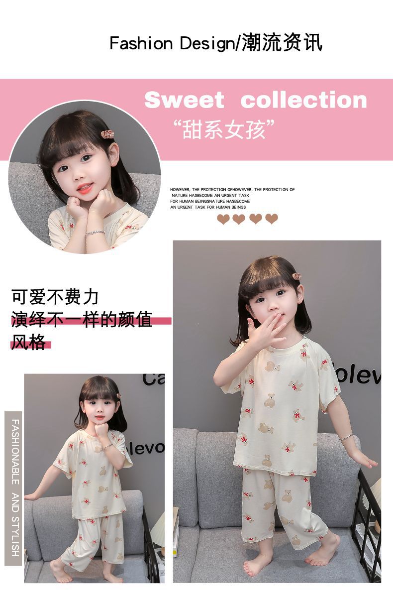 여자 반팔 잠옷 여름 얇은 아기 귀여운 얼음 실크 에어컨 정장 어린 소녀 여름 어린이 가정 의류스토어 가기