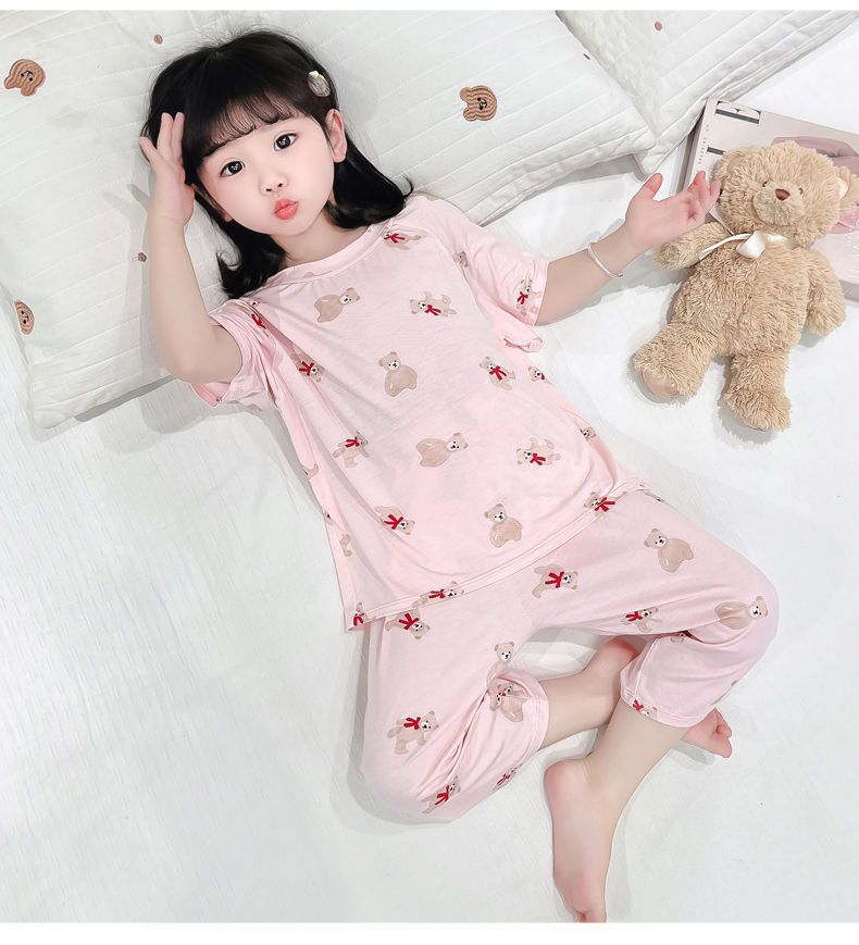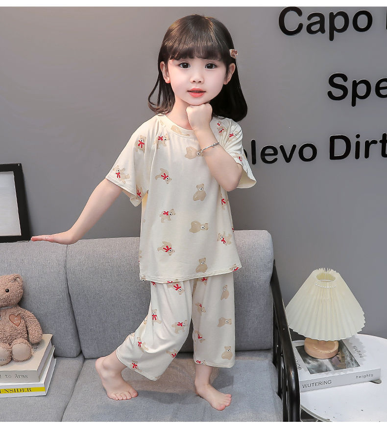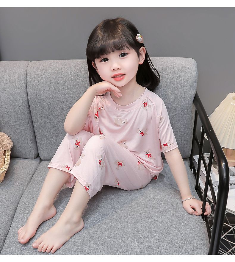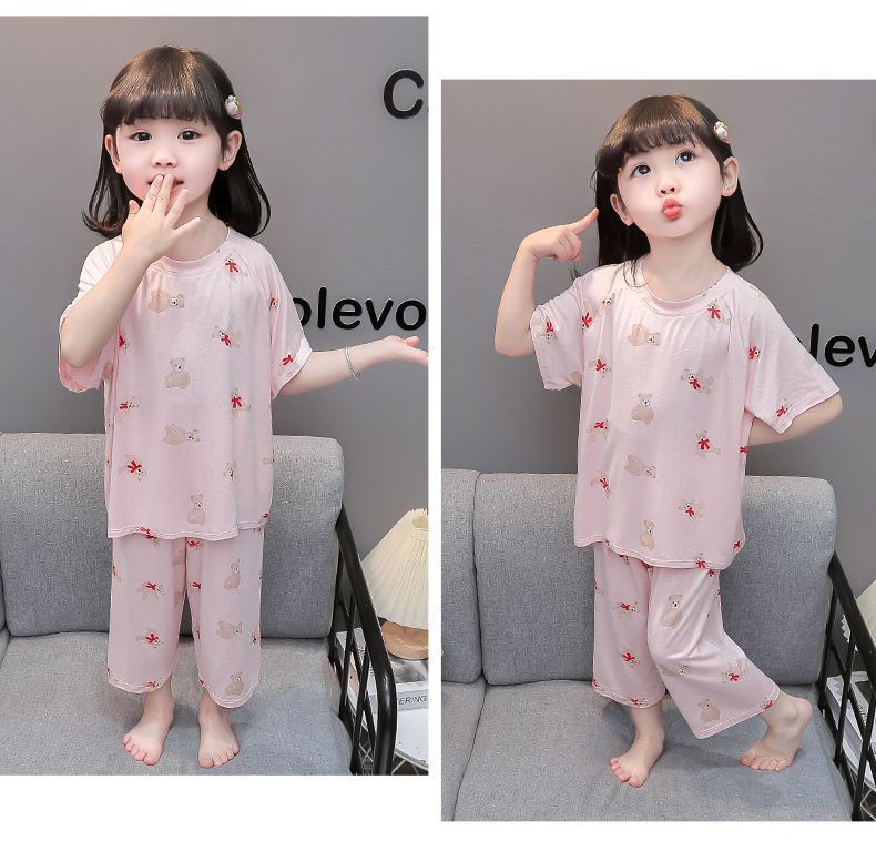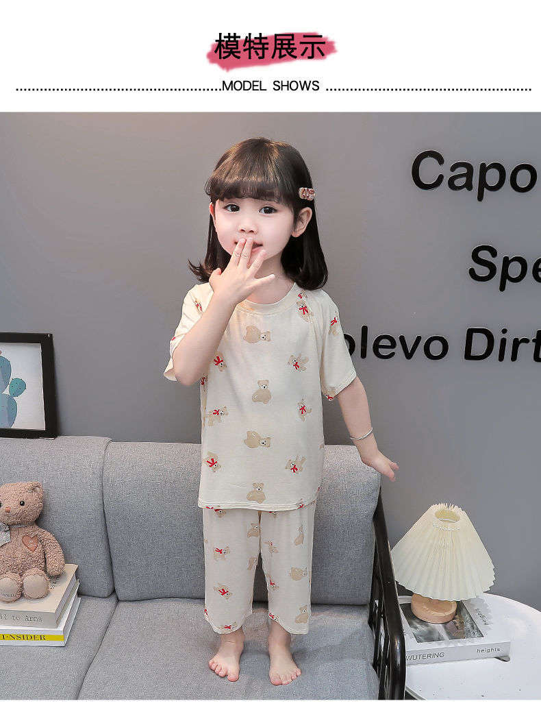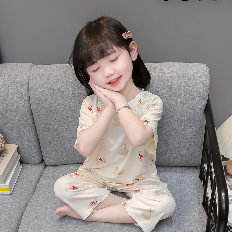 여자 반팔 잠옷 여름 얇은 아기 귀여운 얼음 실크 에어컨 정장 어린 소녀 여름 어린이 가정 의류스토어 가기