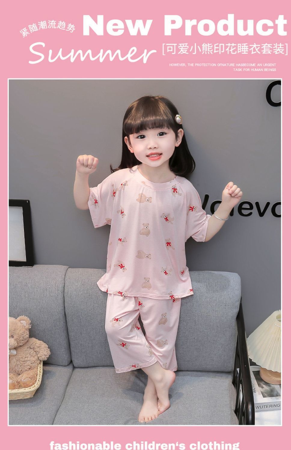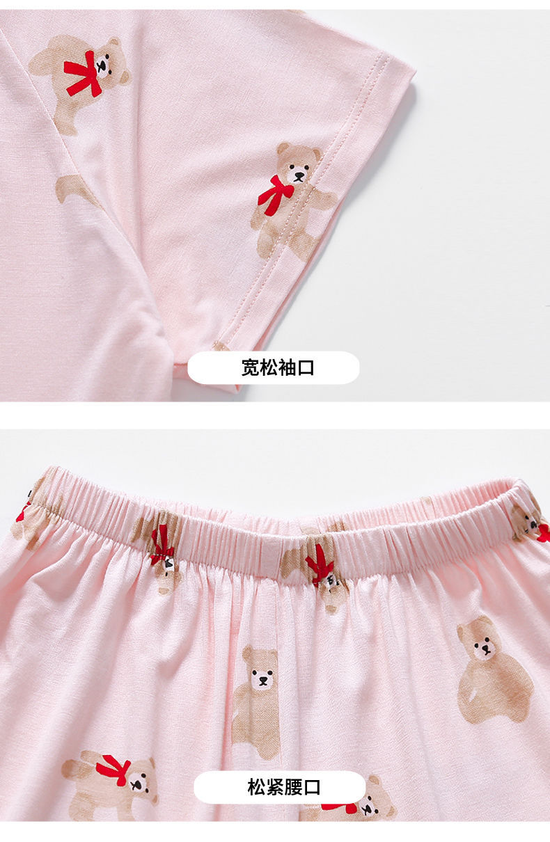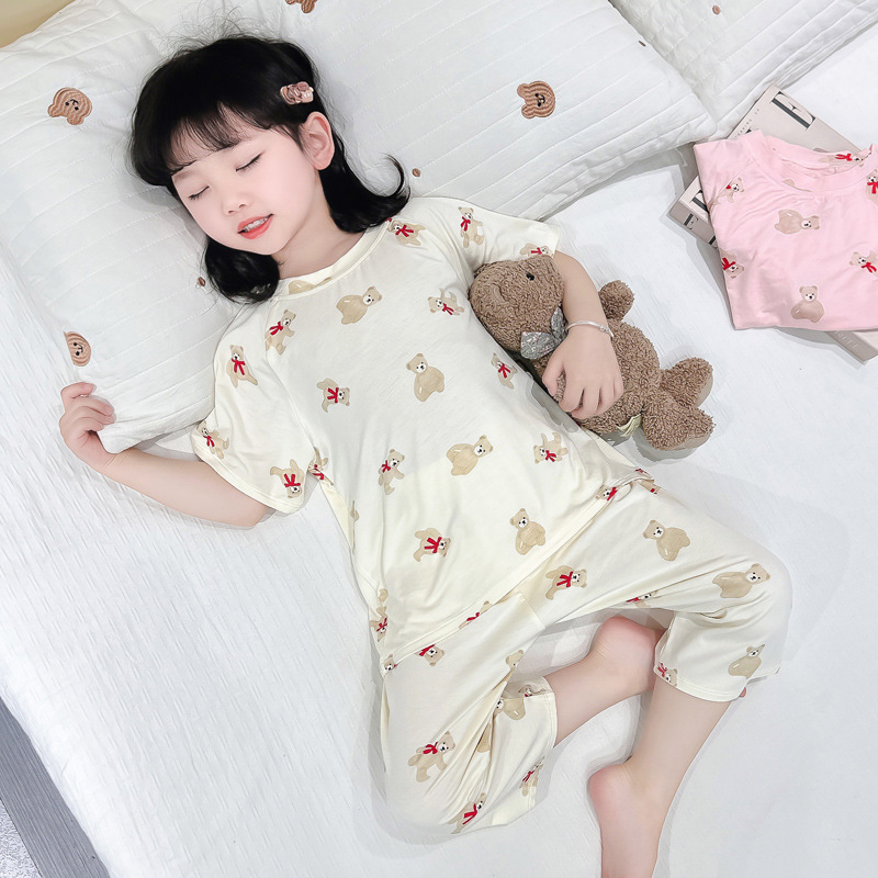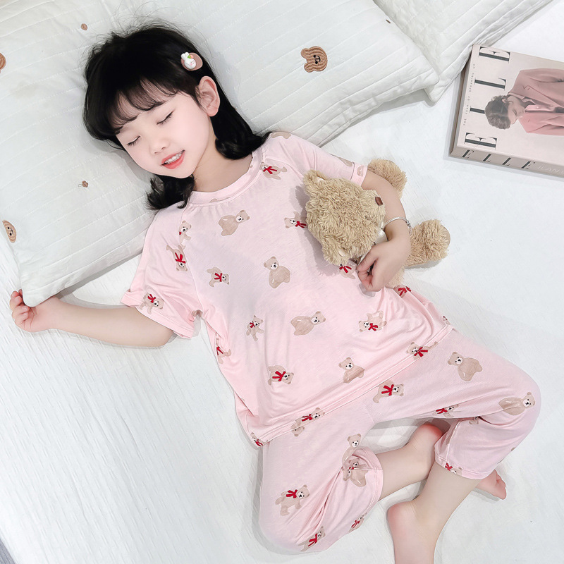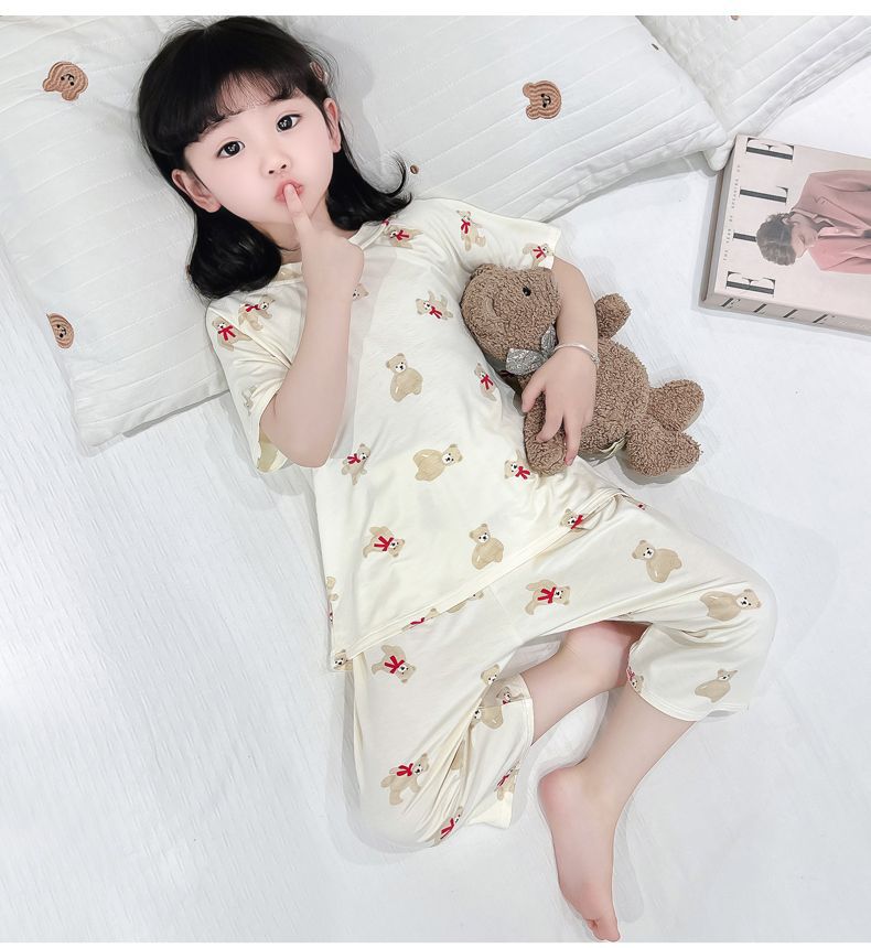 여자 반팔 잠옷 여름 얇은 아기 귀여운 얼음 실크 에어컨 정장 어린 소녀 여름 어린이 가정 의류스토어 가기
