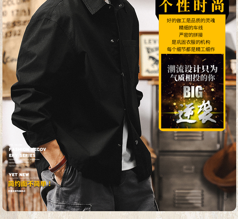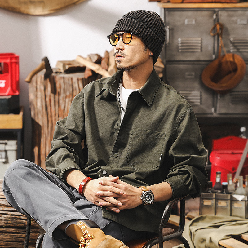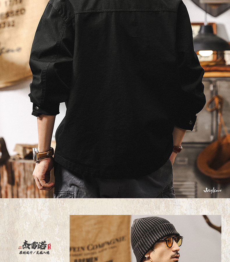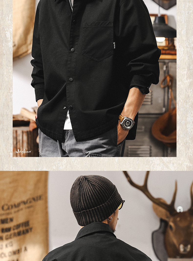 2025년 봄 남성용 아메리칸 레트로 하드 워크 셔츠 남성용 새로운 사파리 슈트 멋진 트렌디 루즈 캐주얼 셔츠스토어 가기