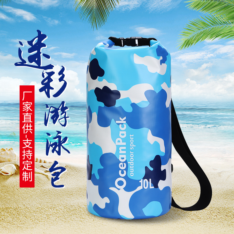 야외 스포츠 수영 방수 가방, 강 추적 가방, 싱글 및 더블 숄더 비치 가방, 위장 색상, 전체 인쇄 방수 가방, 맞춤형스토어 가기
