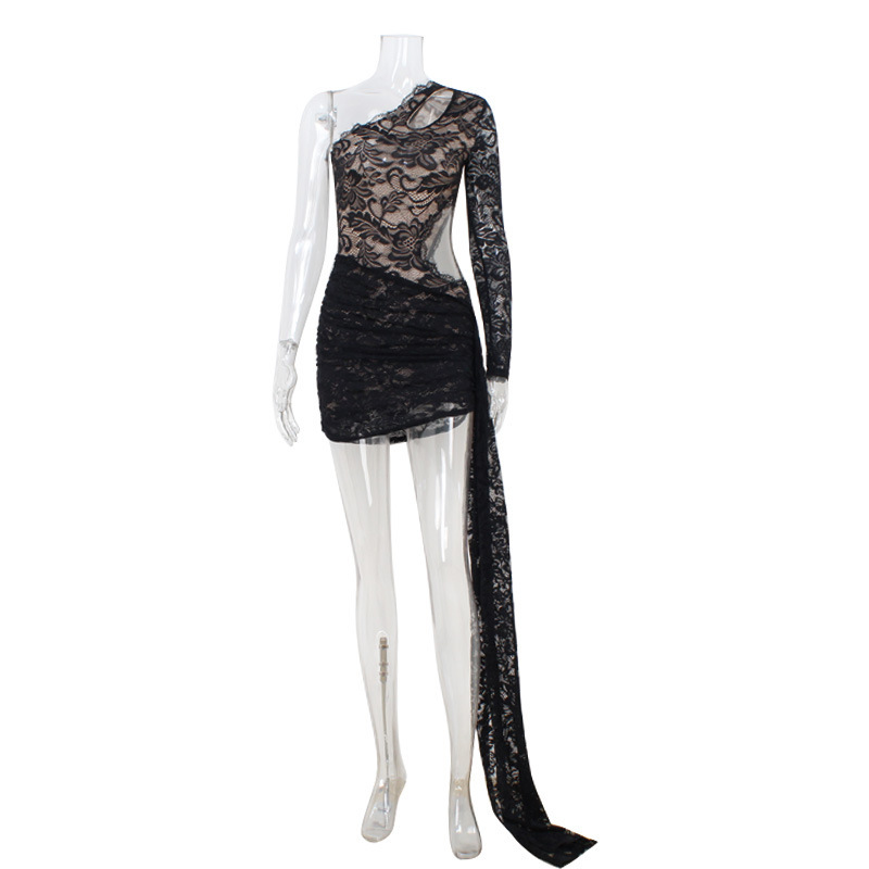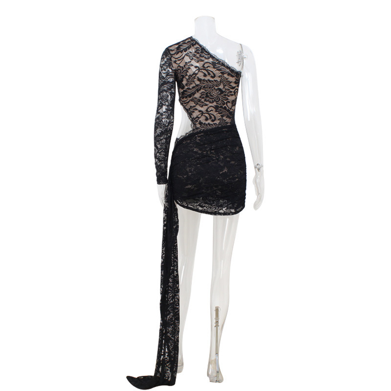 2025 봄과 여름 새로운 패션 슬래시 넥 섹시한 뜨거운 소녀 레이스 꽉 슬림 피트 힙 드레스 레드 카펫 패션쇼 드레스스토어 가기