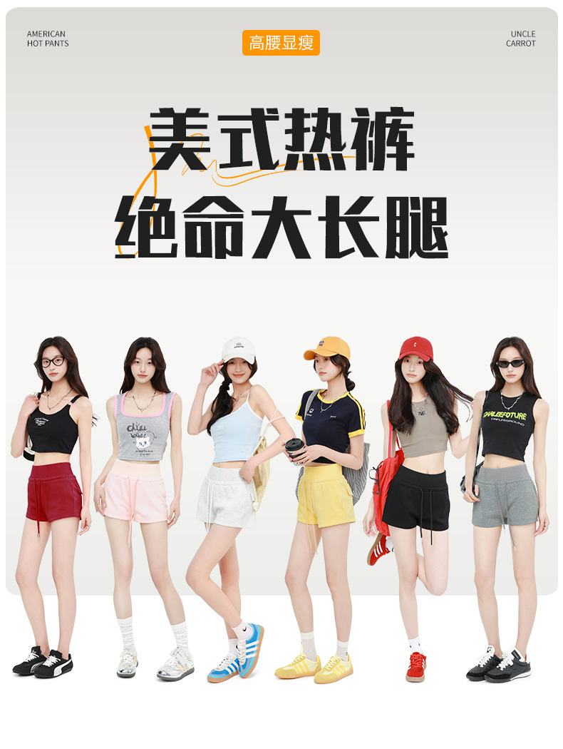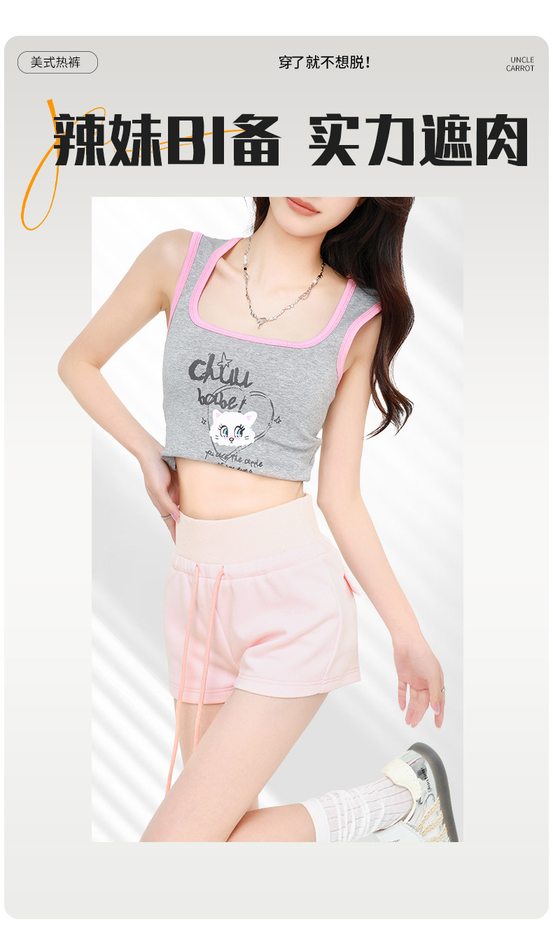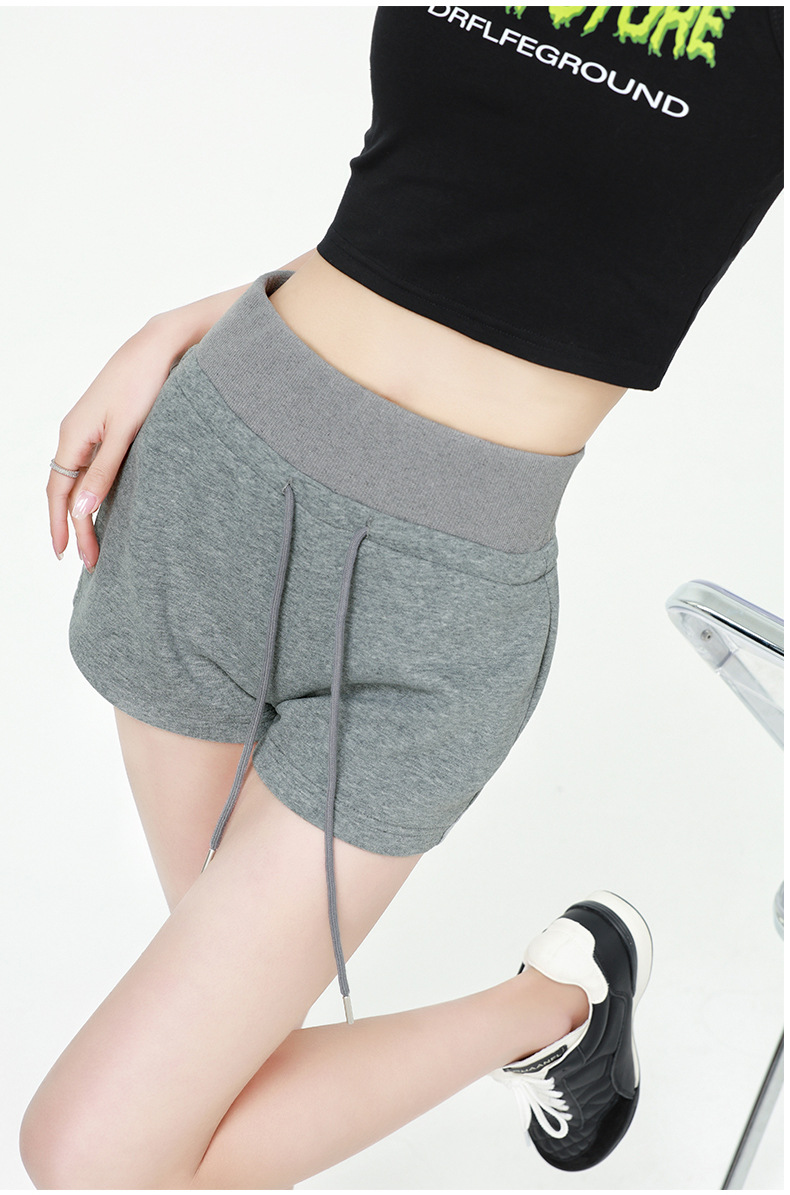 蚂蚁腰运动短裤女夏季新款薄高腰显瘦辣妹百搭系带休闲阔腿热裤子