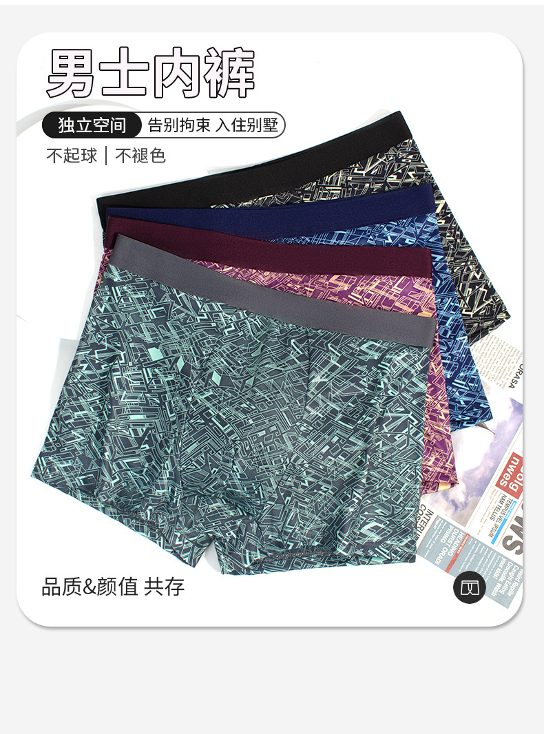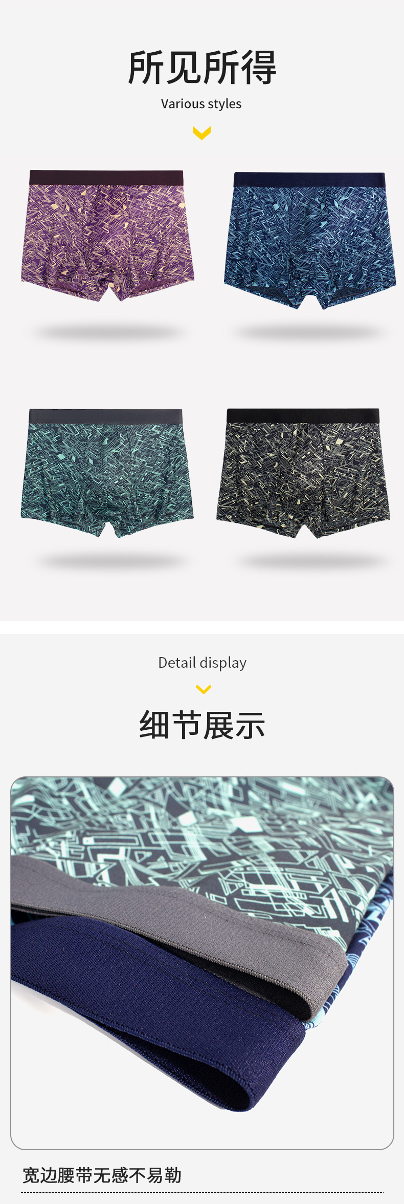 트렌디하고 패셔너블한 프린트 남성 속옷, 편안하고 통기성이 좋은 남성용 미드 웨이스트 피부 친화적인 복서 팬티, 공장 도매스토어 가기