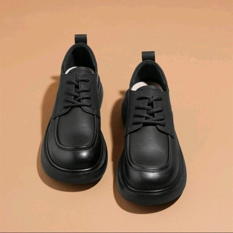 여성을위한 프랑스 두꺼운 밑창 두꺼운 굽 작업 작은 가죽 신발 2025 새로운 봄 신발 영국 스타일 로퍼