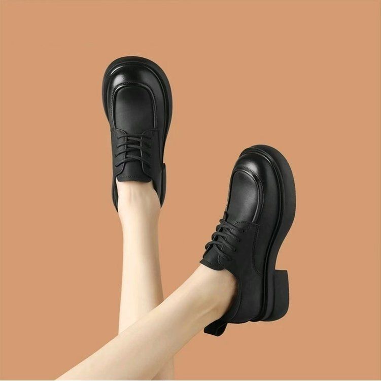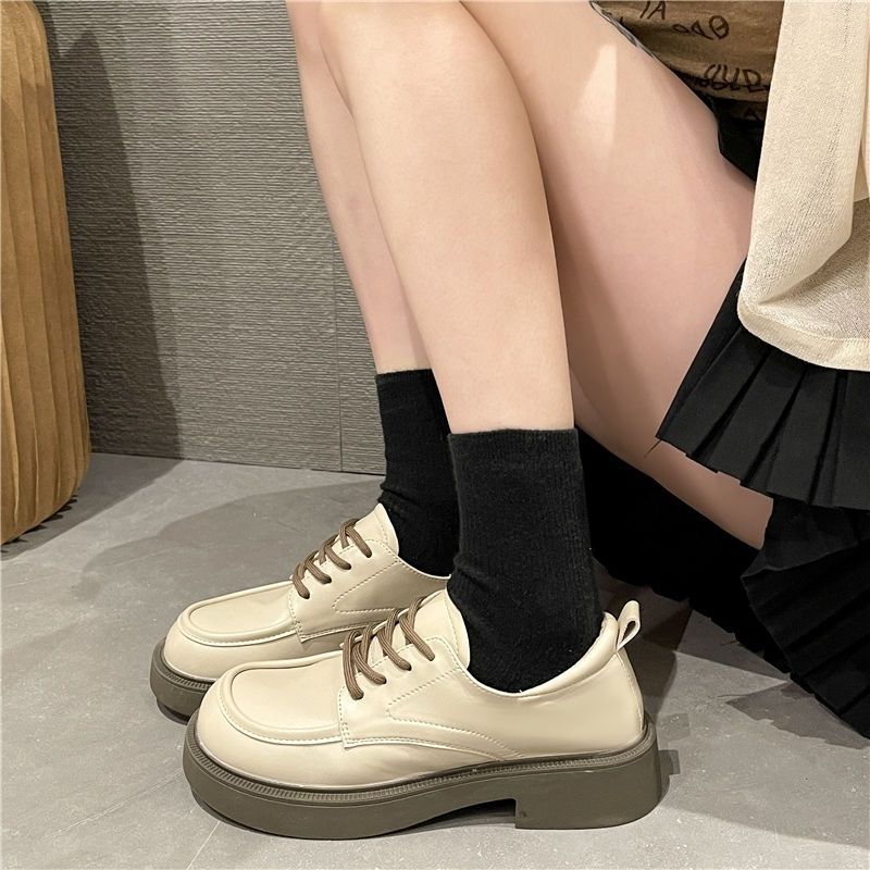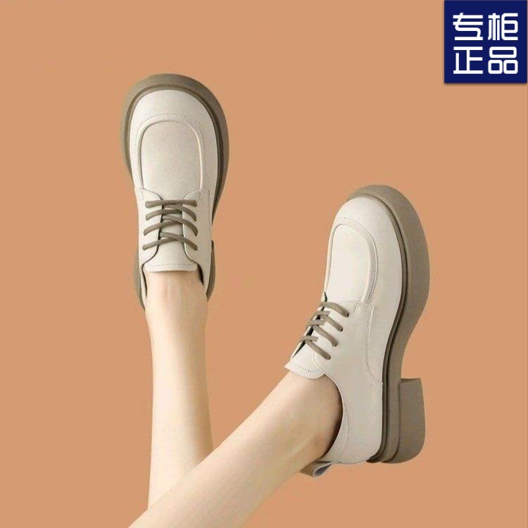 여성을위한 프랑스 두꺼운 밑창 두꺼운 굽 작업 작은 가죽 신발 2025 새로운 봄 신발 영국 스타일 로퍼스토어 가기