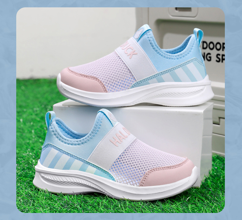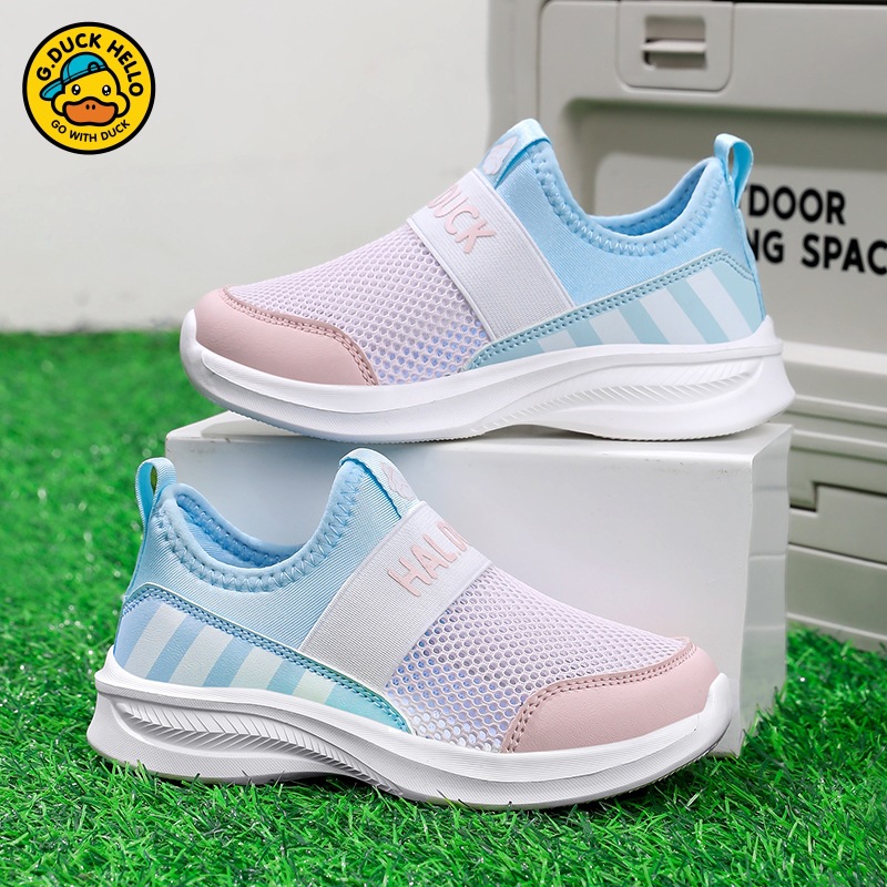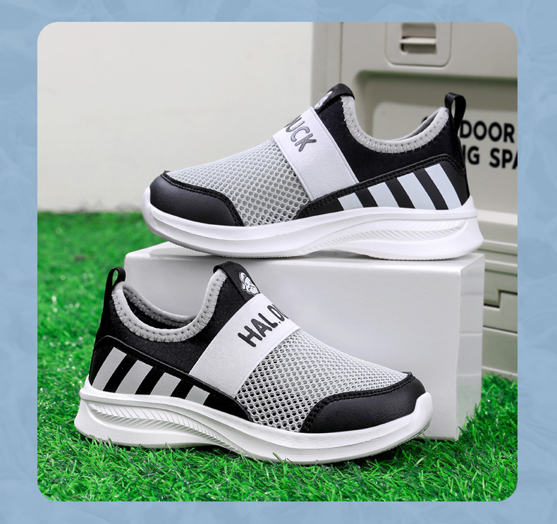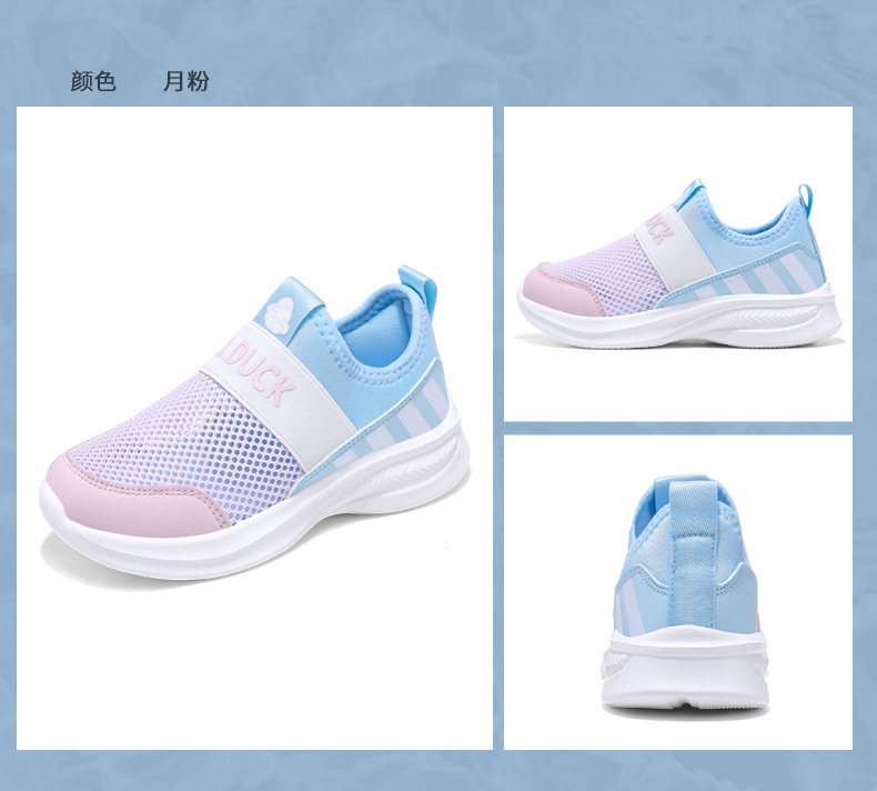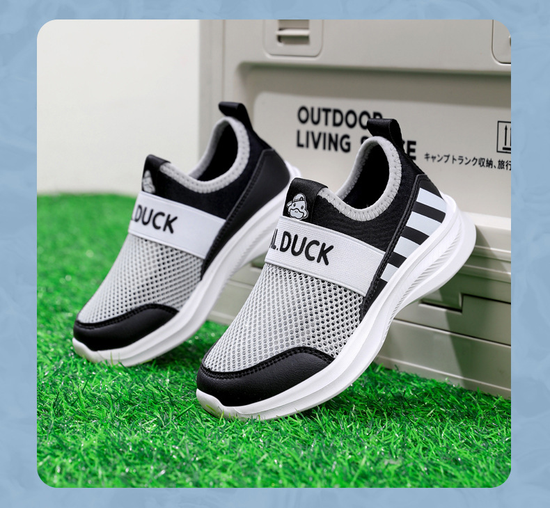 작은 노란색 오리 소년 운동화 단일 메쉬 통기성 어린이 캐주얼 신발 중형 및 대형 어린이 슬립 온 소녀 운동화