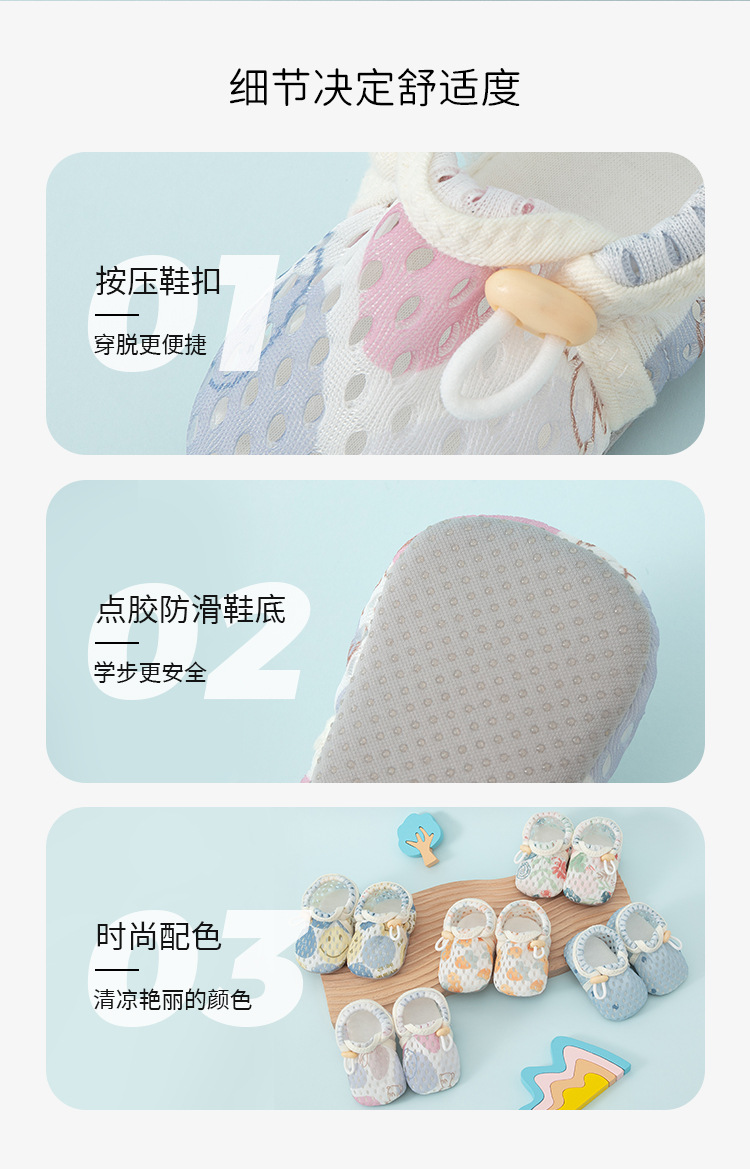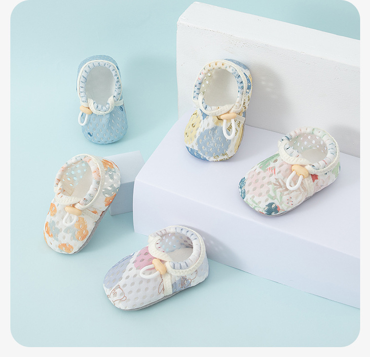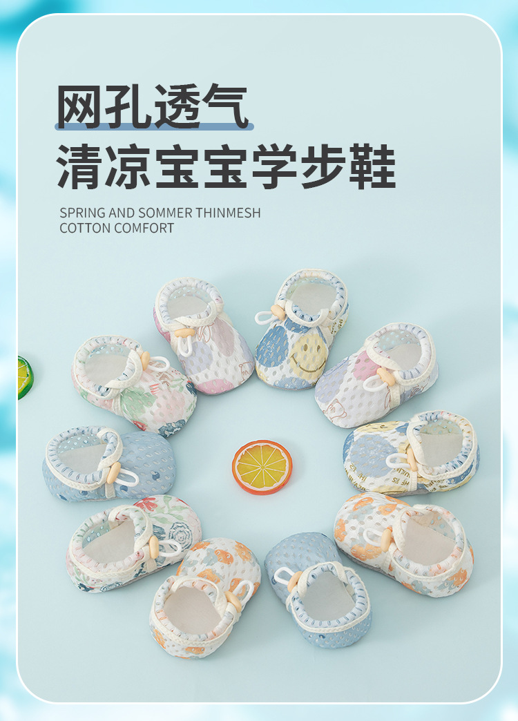 여름 메쉬 아기 신발 부드러운 단독 유아 신발 0-1 세 단계 신발 남성과 여성의 아기 실내 신발 뼈없는