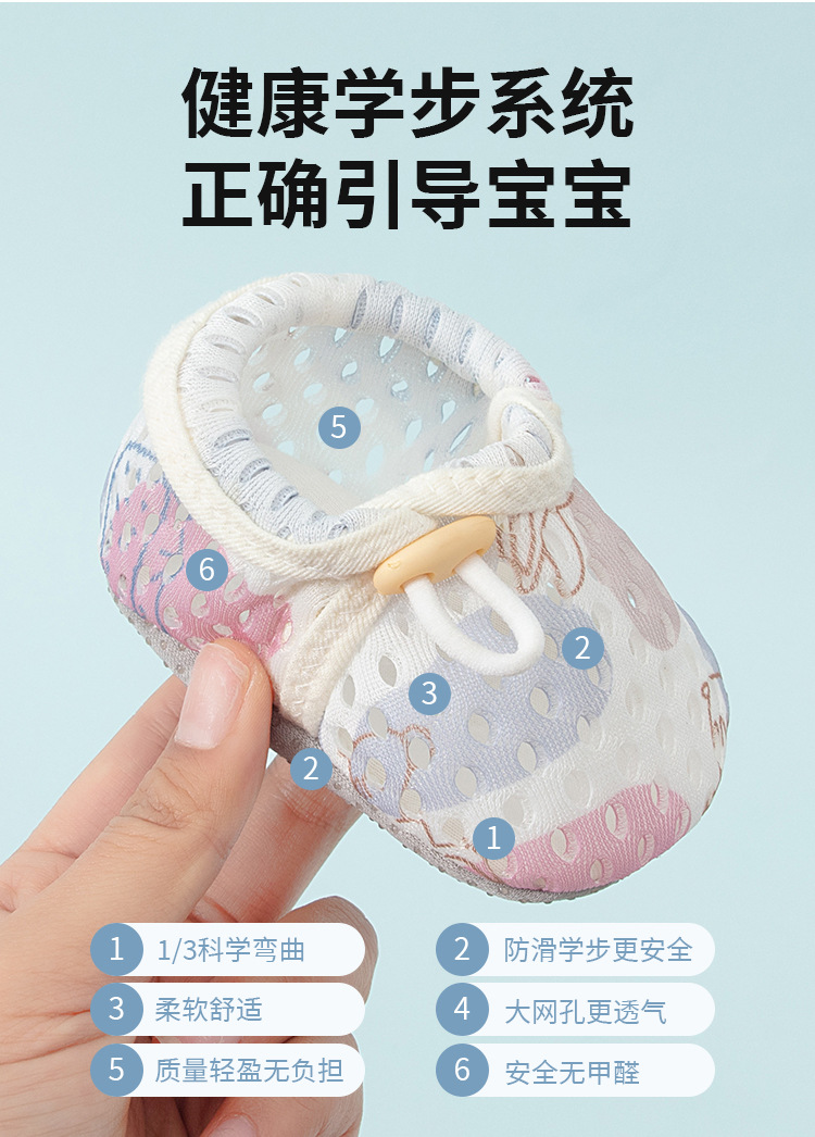 여름 메쉬 아기 신발 부드러운 단독 유아 신발 0-1 세 단계 신발 남성과 여성의 아기 실내 신발 뼈없는스토어 가기