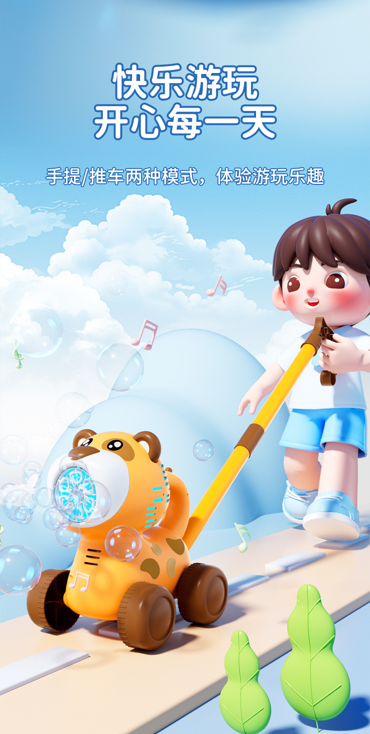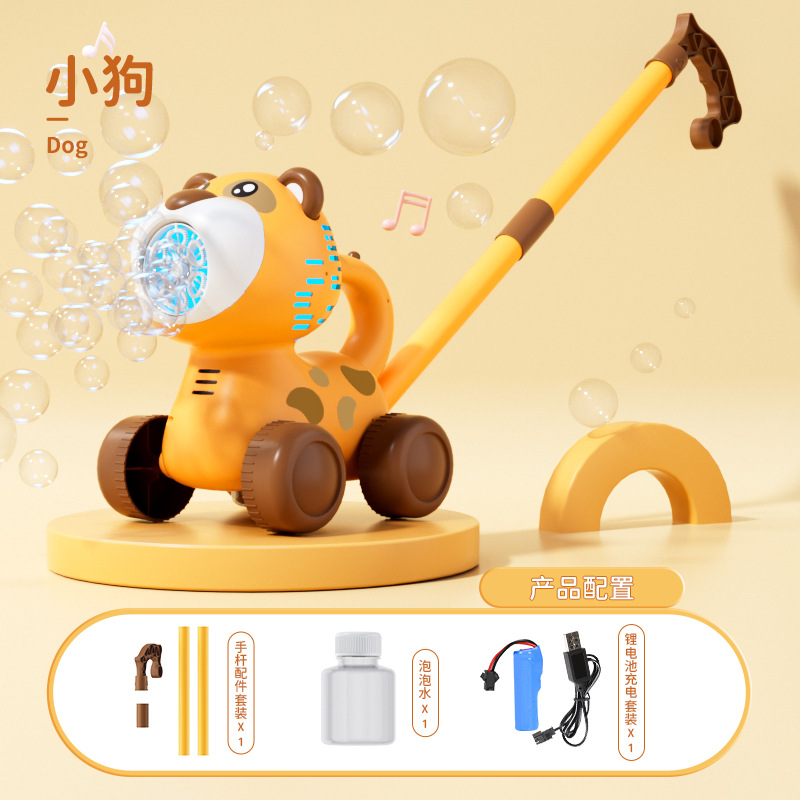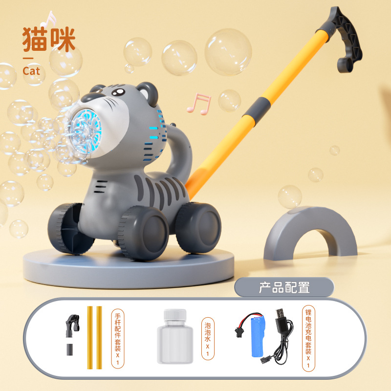 국경 간 동물 푸시 버블 머신 유아 카트 전기 거품 부는 자동차 소리와 가벼운 어린이 장난감 마구간 도매스토어 가기