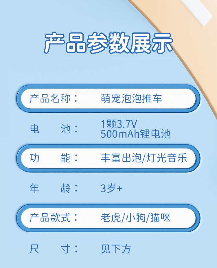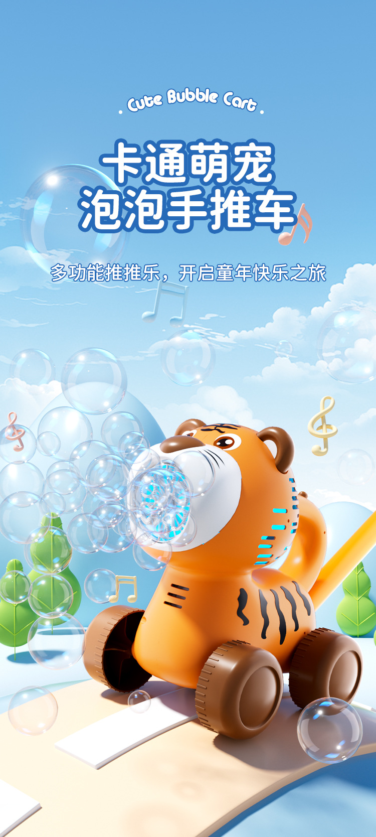 • 타이거 버블 카트 [컬러 박스] 충전식 버전 - 소리, 빛, 음악 포함