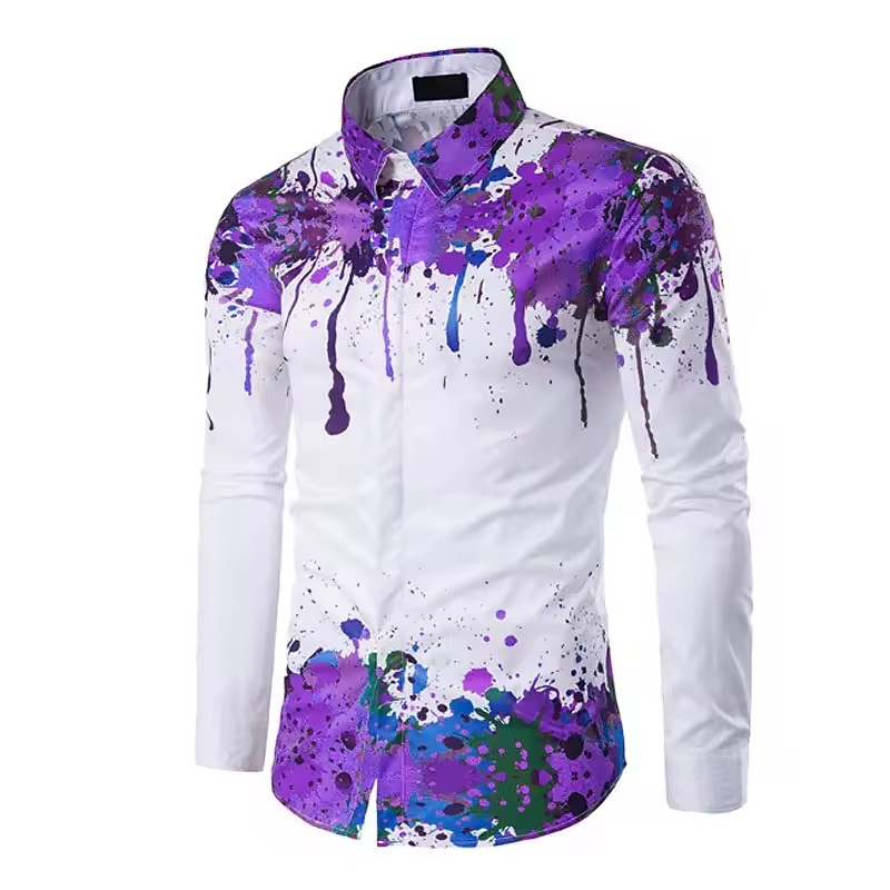 2025 3D 패션 라펠 셔츠 남성용 크로스 컬러 스트라이프 퍼플 블루 캐주얼 스포츠