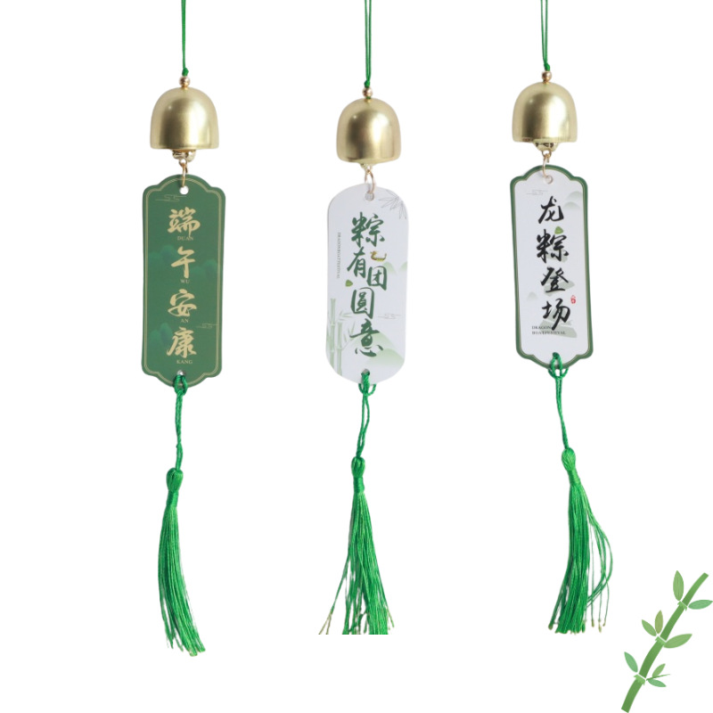 단오절 DIY 태그 벨 브라운 뮤직 태그 카드 선물 상자 포장 명절 인사말 카드 귀여운 단오절 바람 종소리 펜던트스토어 가기