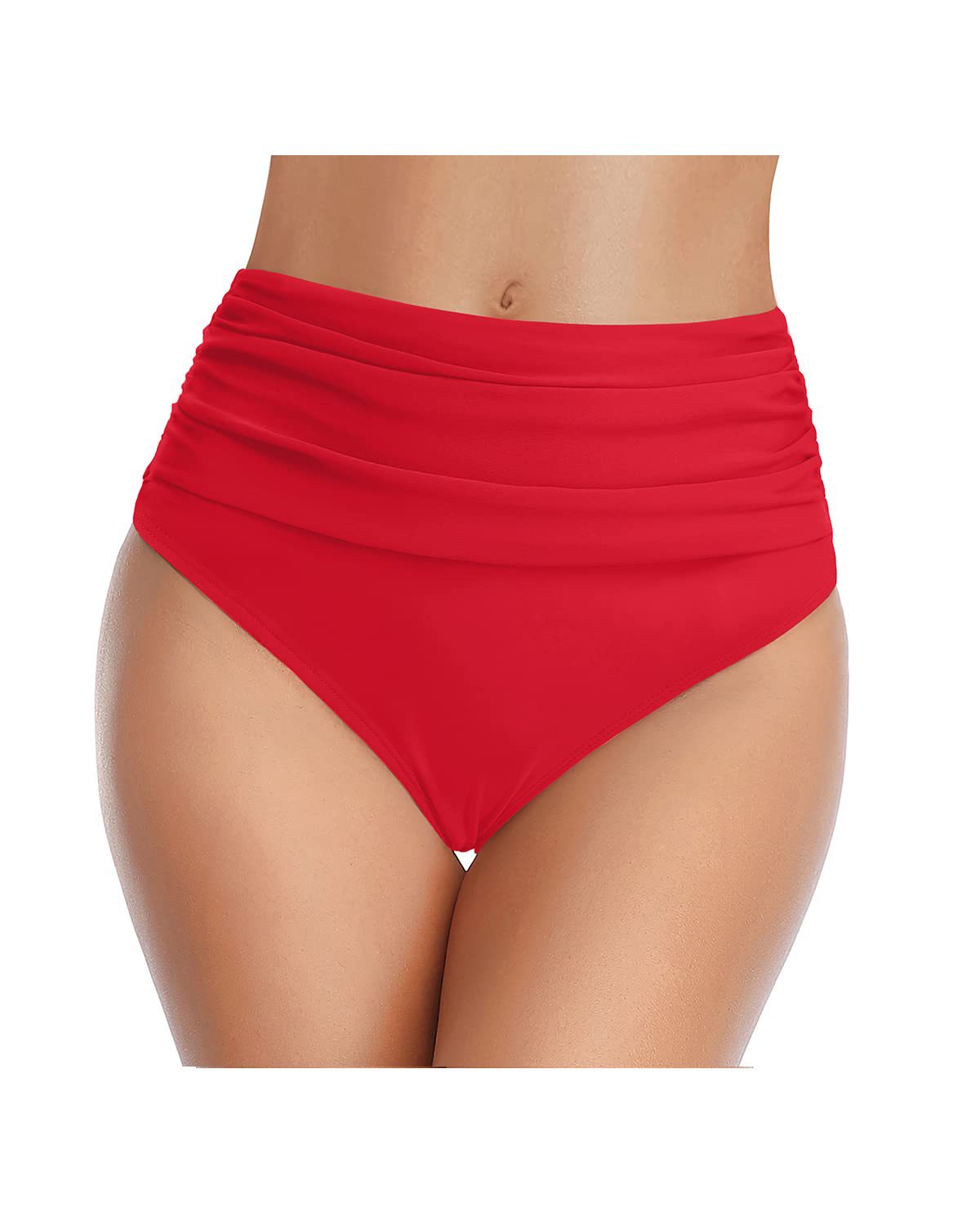 유럽과 미국의 수영 바지 도매 국경 간 Amazon 여성용 하이 웨이스트 스트레치 플리츠 수영 바지 여성용 보수적 인 삼각형 수영 바지