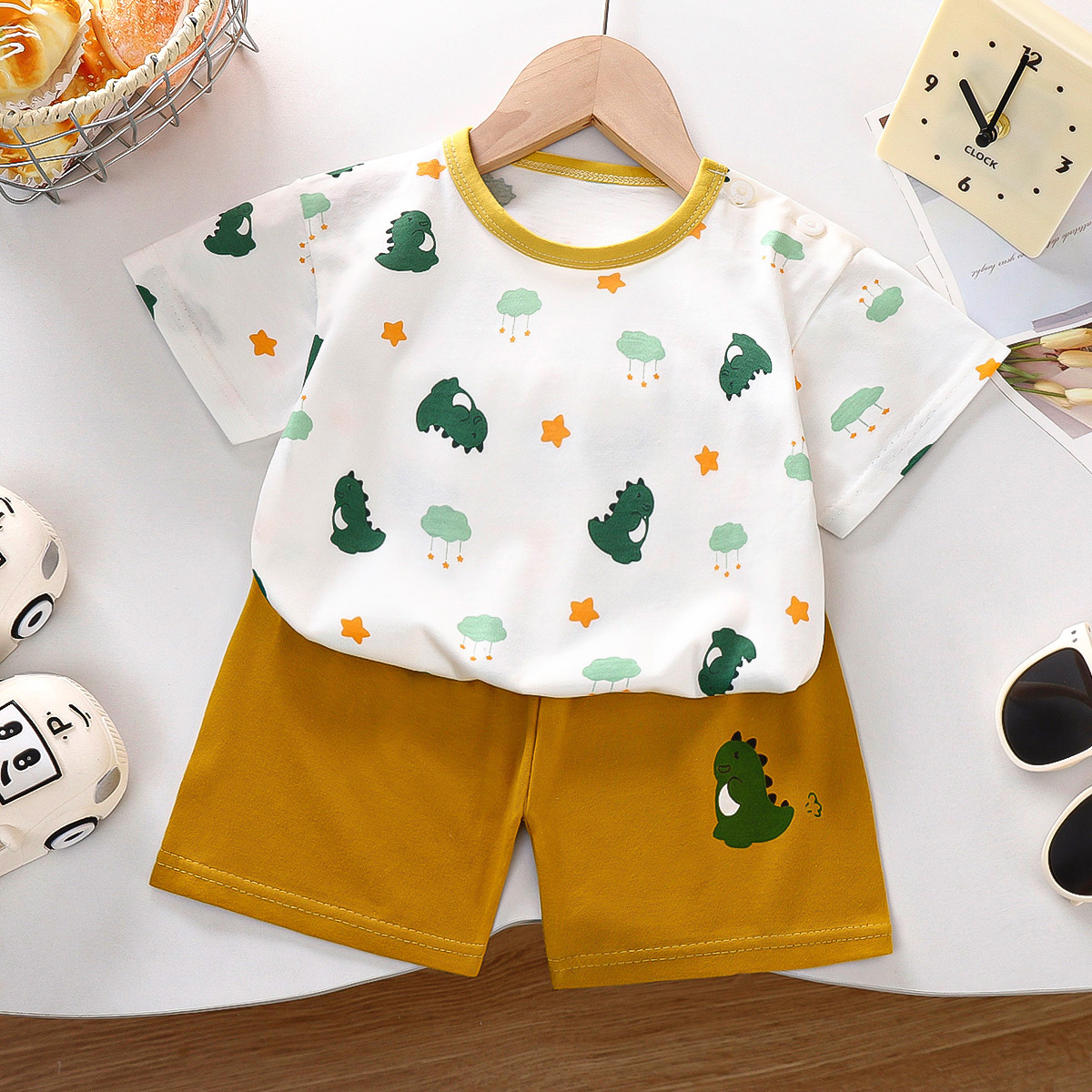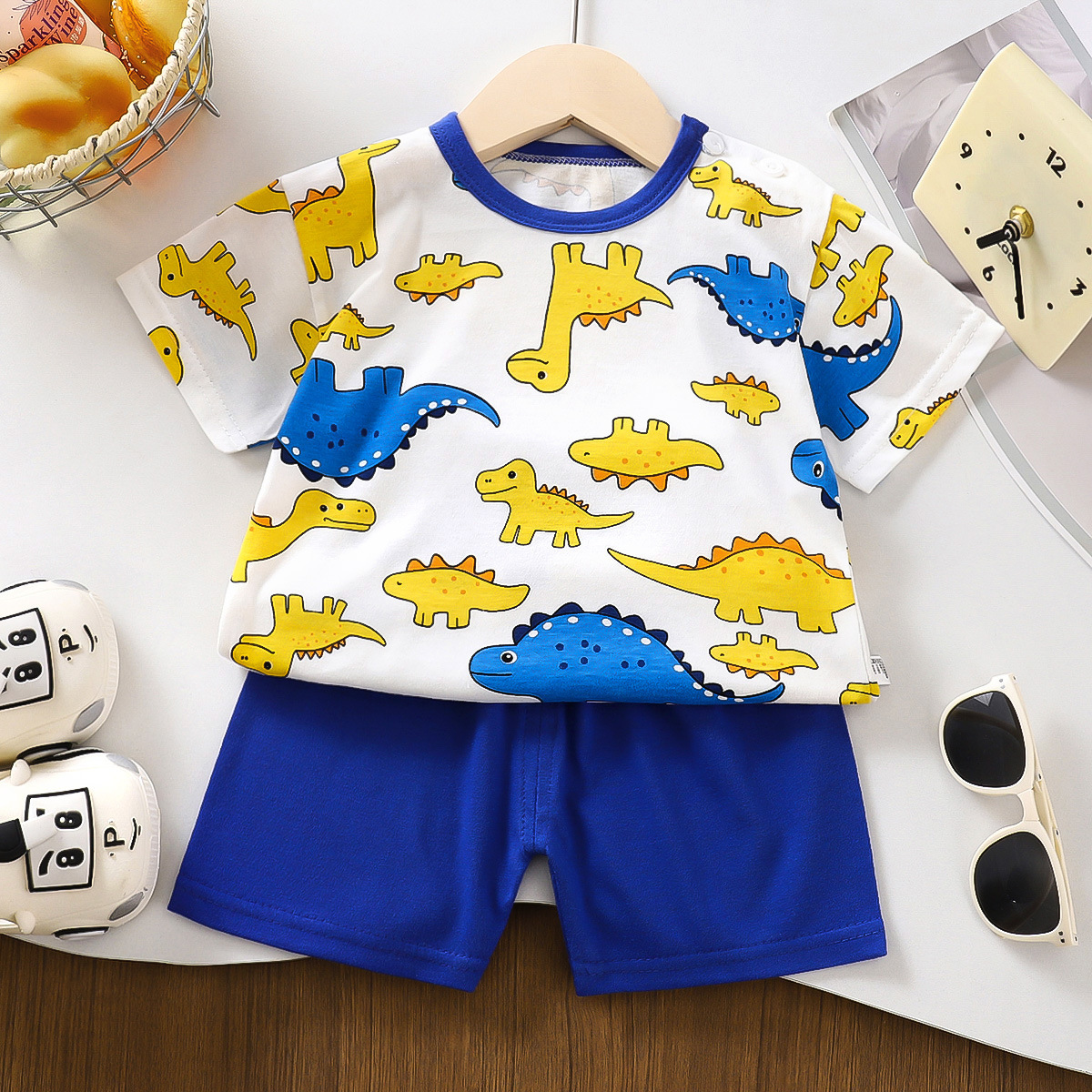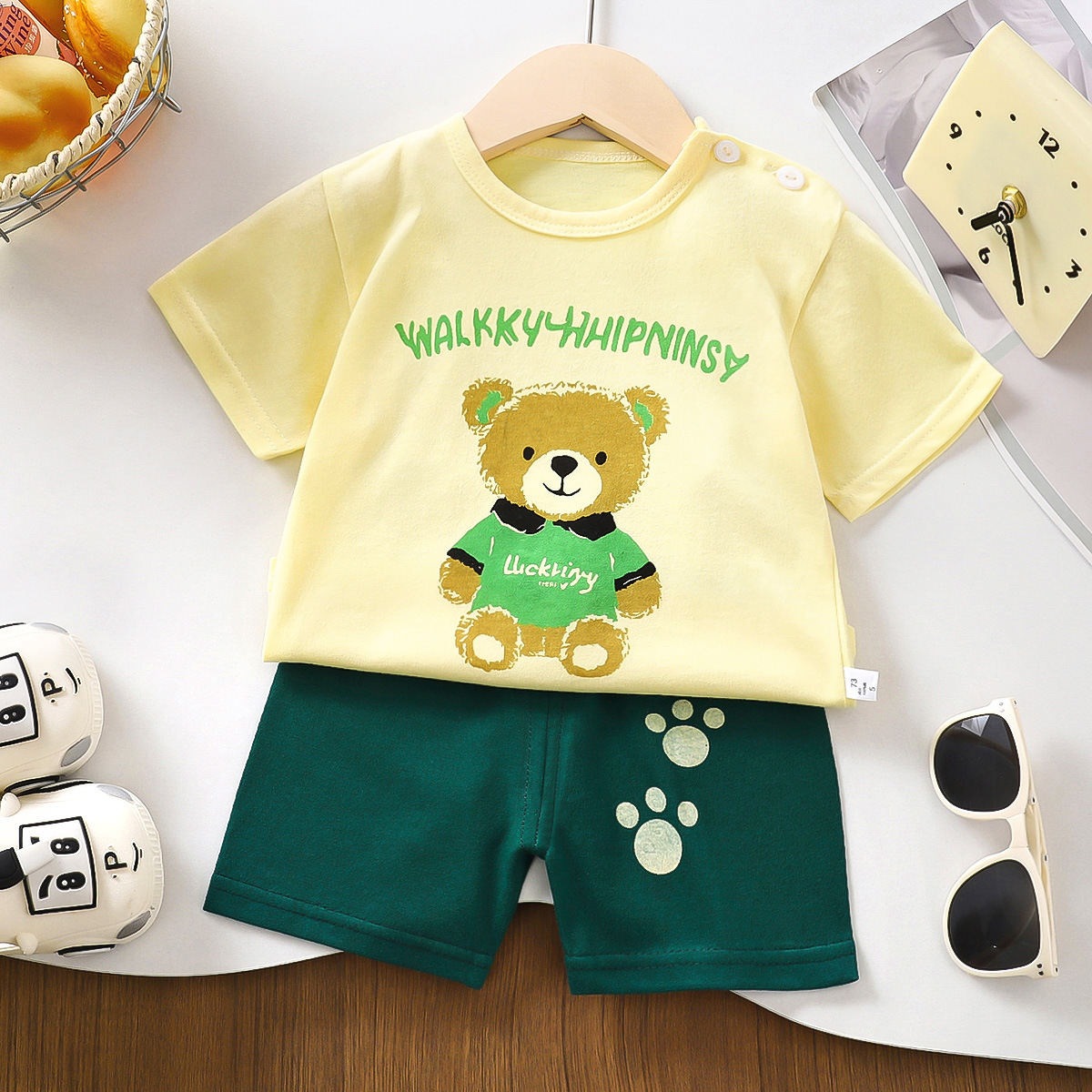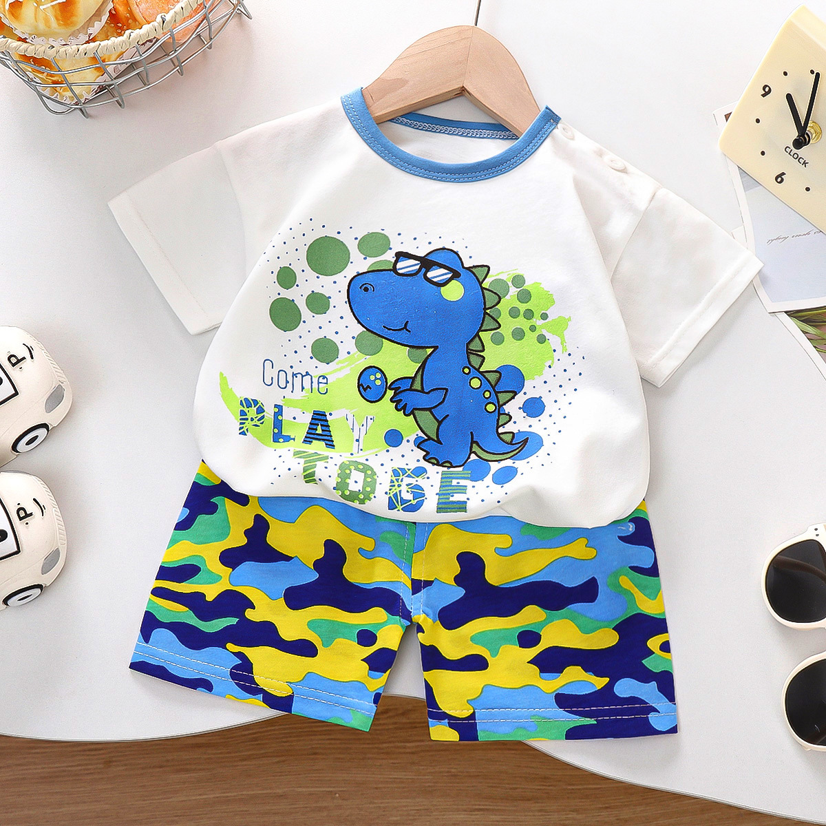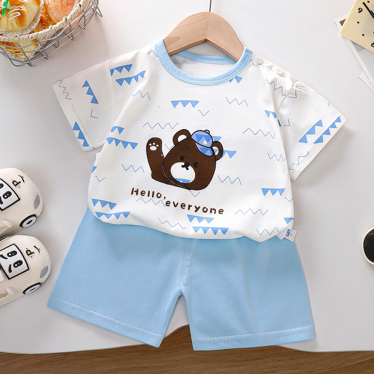 여름 새 면 어린이 반팔 세트 한국식 소년 반바지 아기를위한 얇은 아동복 소녀 여름 옷스토어 가기